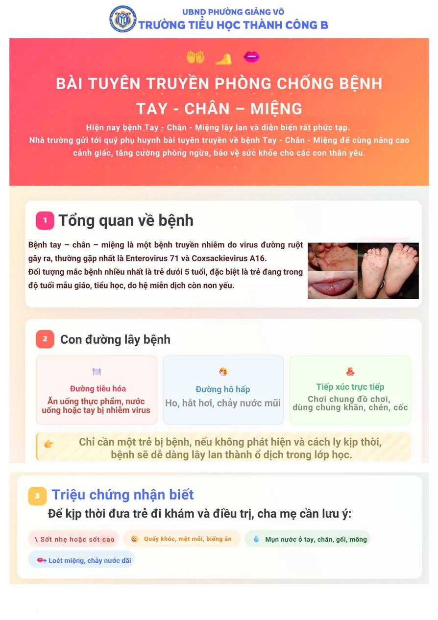 TRƯỜNG TIỂU HỌC THÀNH CÔNG B BÀI TUYÊN TRUYỀN PHÒNG CHỐNG BỆNH TAY- CHÂN - MIỆNG