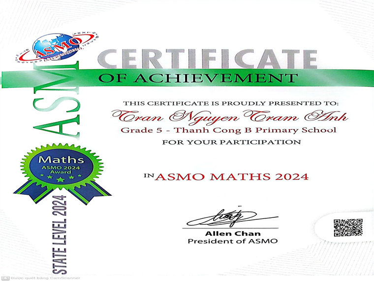Trâm Anh sẽ tham dự Vòng Quốc tế của cuộc thi được tổ chức vào Tháng 2/2025 sắp tới. Chúc cho bạn sẽ tự tin và đạt kết quả cao tại cuộc thi này và nhiều sân chơi khác nữa. Bạn luôn là niềm tự hào của Tập thể 5A6.