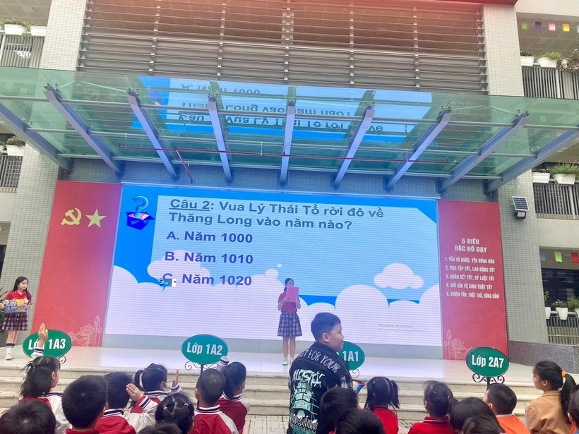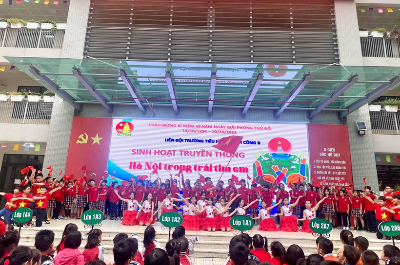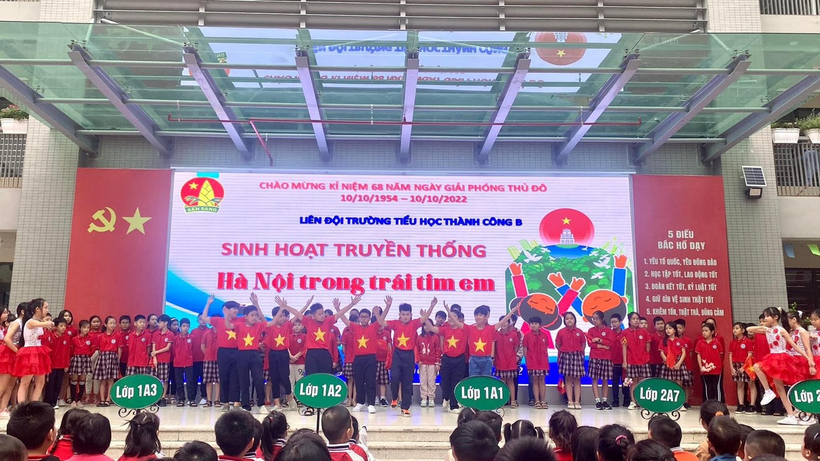 Hoà chung với niềm vui của Thủ đô và đất nước, trường Tiểu học Thành Công B đã tổ chức nhiều hoạt động ý nghĩa và thiết thực kỷ niệm 68 năm Ngày Giải phóng Thủ đô (10/10/1954 - 10/10/2022) ôn lại những trang sử vàng chói lọi của quân và dân Thủ đô với chủ đề “Hà Nội trong trái tim em" trong tiết sinh hoạt dưới cờ đầu tuần.