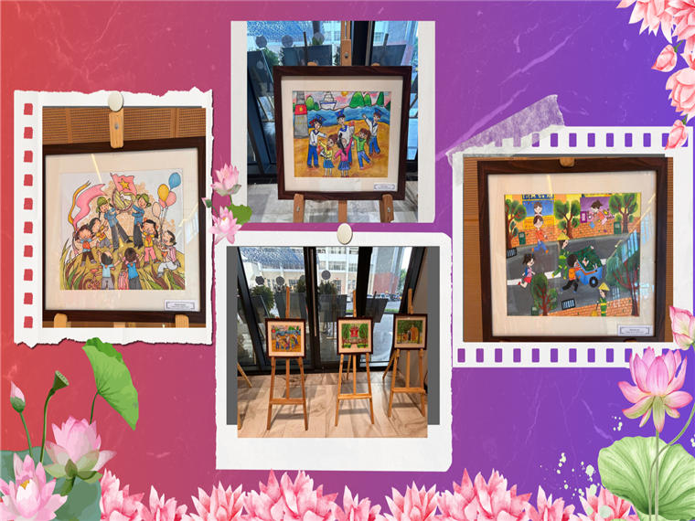 Tranh vẽ của học sinh Trường Tiểu học Thành Công B được trưng bày tại địa điểm tổ chức Đại hội