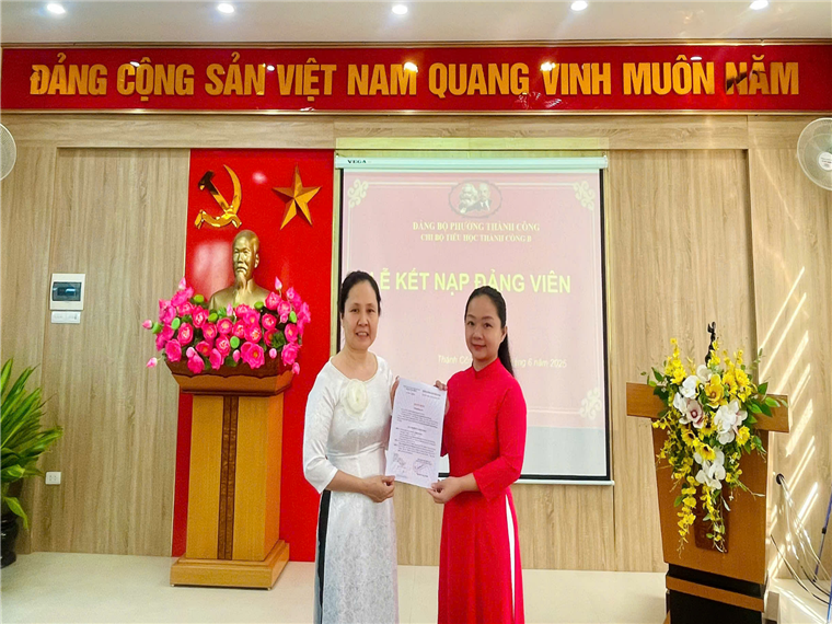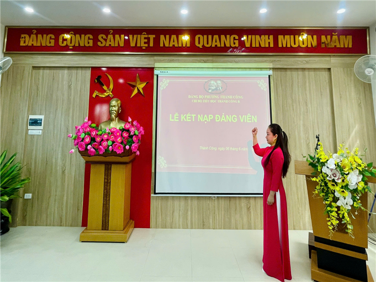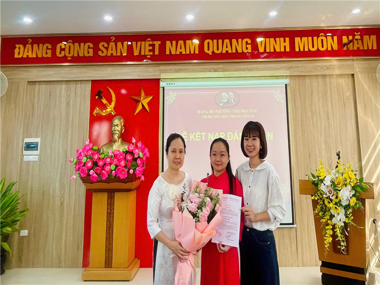 Trong không khí trang nghiêm, với sự hiện diện của các đồng chí Đảng viên chính thức, Chi bộ đã kết nạp quần chúng ưu tú Nguyễn Quỳnh Phương vào hàng ngũ Đảng Cộng sản Việt Nam. Đây là sự ghi nhận xứng đáng cho quá trình phấn đấu không ngừng, tinh thần trách nhiệm cao và những đóng góp tích cực của đồng chí trong công tác chuyên môn và phong trào của nhà trường. Trở thành đảng viên chính thức sẽ là nguồn động lực để đồng chí tiếp tục rèn luyện, cống hiến nhiều hơn cho sự nghiệp giáo dục quận Ba Đình nói chung và Trường Tiểu học Thành Công B nói riêng.