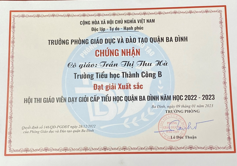Giải xuất sắc đã thuộc về cô giáo Trần Thị Thu Hà lớp 1A6 với môn Tiếng Việt, giải Nhì thuộc về cô giáo Quách Minh Hằng lớp 1A3 môn Toán, giải Ba thuộc về cô giáo Trần Thị Thúy môn Tiếng Anh.