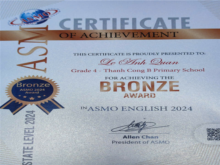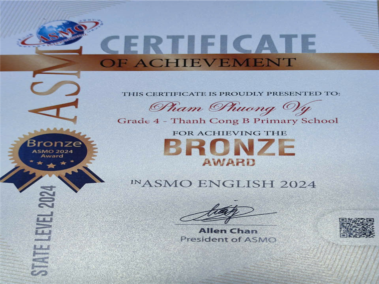 Yêu thích môn Tiếng Anh từ nhỏ, các bạn Anh Quân, Công Thành và Phương Vy đã tham gia thi môn Tiếng Anh. Kết quả vòng địa phương cả ba bạn đều đạt Giải Đồng. Trong vòng thi quốc gia tiếp theo, cả ba bạn cùng đạt Giải Khuyến khích.