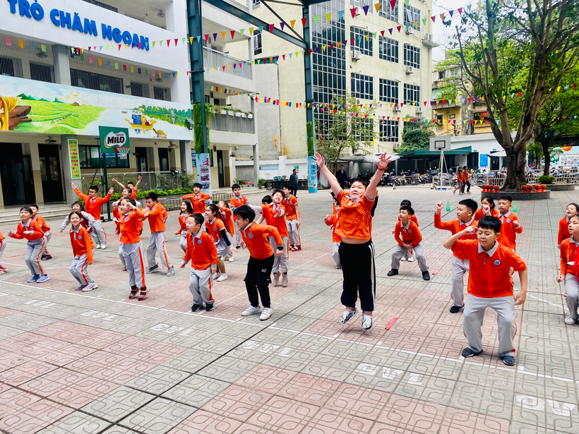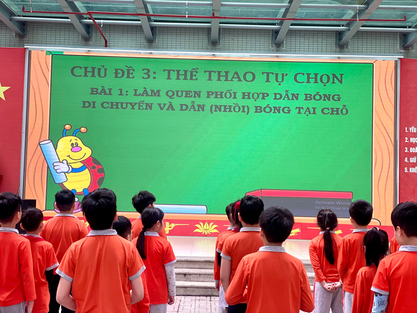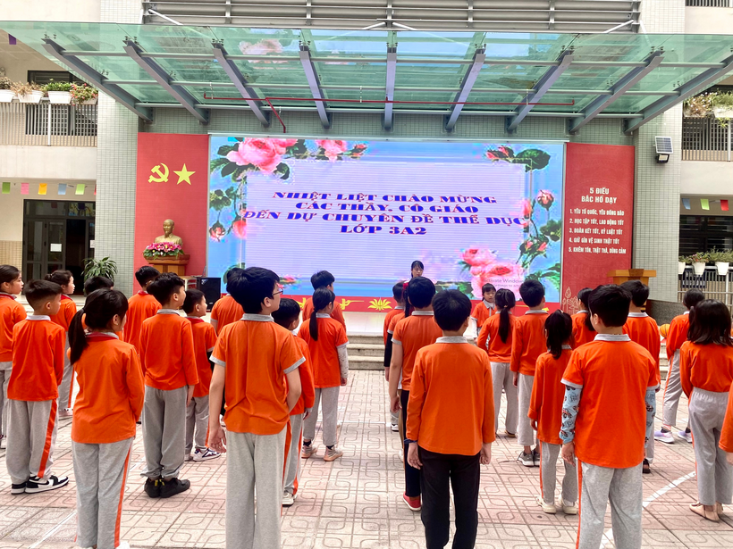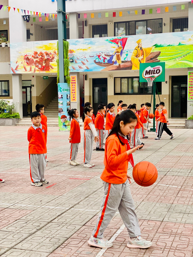 Với sự chuẩn bị bài giảng chu đáo, vận dụng hình thức tổ chức dạy học linh hoạt của cô giáo Vũ Mai Phượng và sự tích cực học tập của các em học sinh lớp 3A2, tiết học Thể dục “Làm quen dẫn bóng di chuyển và dẫn (nhồi) bóng tại chỗ” đã diễn ra rất sôi nổi. Các em được tham gia tập luyện một cách hiệu quả, đảm bảo kiến thức trọng tâm của bài học.
