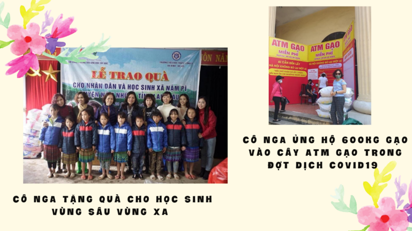 Năm nào cũng vậy, khi nhận lớp chủ nhiệm, cô lập tức rà soát xem trong lớp có những học sinh nào có hoàn cảnh khó khăn để giúp đỡ kịp thời. Cô Nga đã đỡ đầu cho nhiều học sinh bằng cách đóng tiền học, tiền ăn cho các con, động viên sát sao giúp đỡ để các học sinh đó vui vẻ, tự tin tiếp tục học tập, Ngoài học sinh lớp mình, cô còn giáo dục học sinh trong lớp giúp đỡ bạn khó khăn ở lớp khác, vùng sâu vùng xa thông qua các đợt quyên góp từ thiện, và bản thân cô luôn đi đầu làm gương cho các con học sinh noi theo. Ngoài ra, trong cuộc sống nếu gặp các hoàn cảnh khó khăn qua bạn bè hoặc các phương tiện thông tin, cô Nga cũng gửi chút ít góp sức động viên, giúp đỡ họ vượt qua khó khăn.