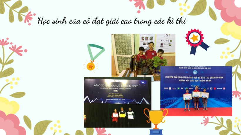 Bản thân cô cũng đã nhận được rất nhiều giải thưởng, giấy khen, danh hiệu mà các cấp ghi nhận, khen thưởng trong suốt 18 năm công tác tại trường: