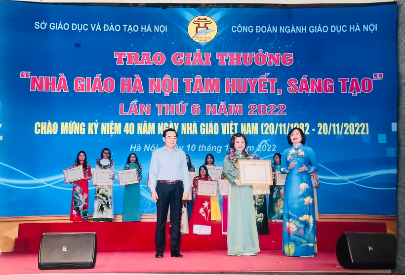 Đại diện lãnh đạo Sở GD&ĐT Hà Nội, Công đoàn ngành Giáo dục Hà Nội trao Giải thưởng Nhà giáo Hà Nội tâm huyết, sáng tạo lần thứ 6 cho 40 nhà giáo