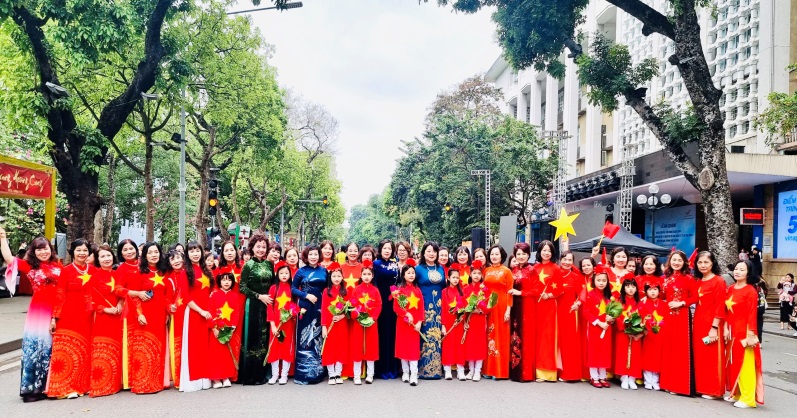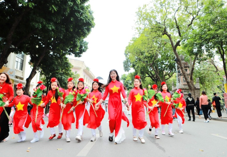 Tập thể cô trò trường Tiểu học Thành Công B đã lựa chọn những chiếc áo dài in hình cờ đỏ sao vàng rực rỡ sắc màu tham gia trình diễn. Dù tiết trời mùa đông giá rét và phải dậy rất sớm để chuẩn bị tham gia chương trình nhưng với sự chuẩn bị và chăm sóc chu đáo của các thầy cô, đoàn diễu hành trường Tiểu học Thành Công B đã hoàn thành xuất sắc phần trình diễn của mình. Cô trò thật xinh đẹp, duyên dáng và tươi tắn trong những tà áo dài thướt tha.