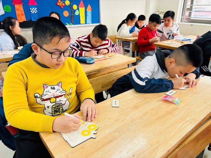 Các bạn cũng đã được tự tay làm những tấm thiệp xinh xắn bằng gỗ và viết những lời chúc tốt đẹp dành tặng đến bà, mẹ, chị của mình.