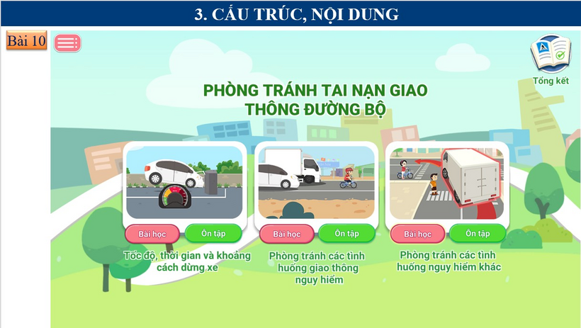 Học sinh và giáo viên khi tiếp cận với tài liệu điện tử về ATGT sẽ thấy bộ tài liệu dễ sử dụng, giao diện hình ảnh bắt mắt, cấu trúc nội dung chương trình thiết kế phù hợp với đặc điểm tâm lí học sinh tiểu học.