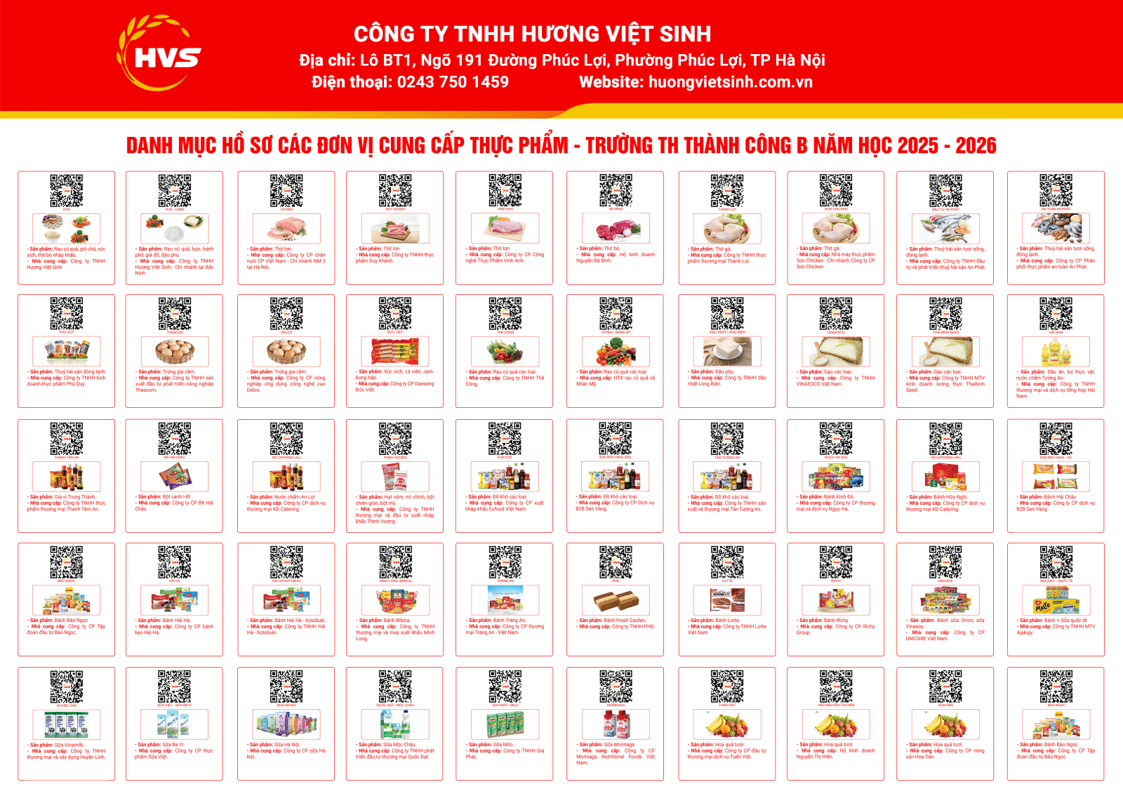 Danh mục Hồ sơ các đơn vị cung cấp thực phẩm cho Trường Tiểu học Thành Công B năm học 2025-2026