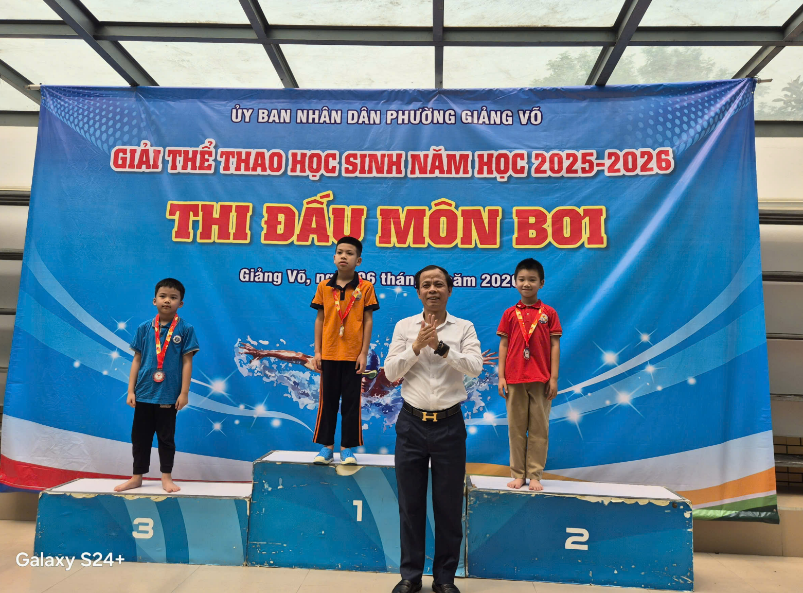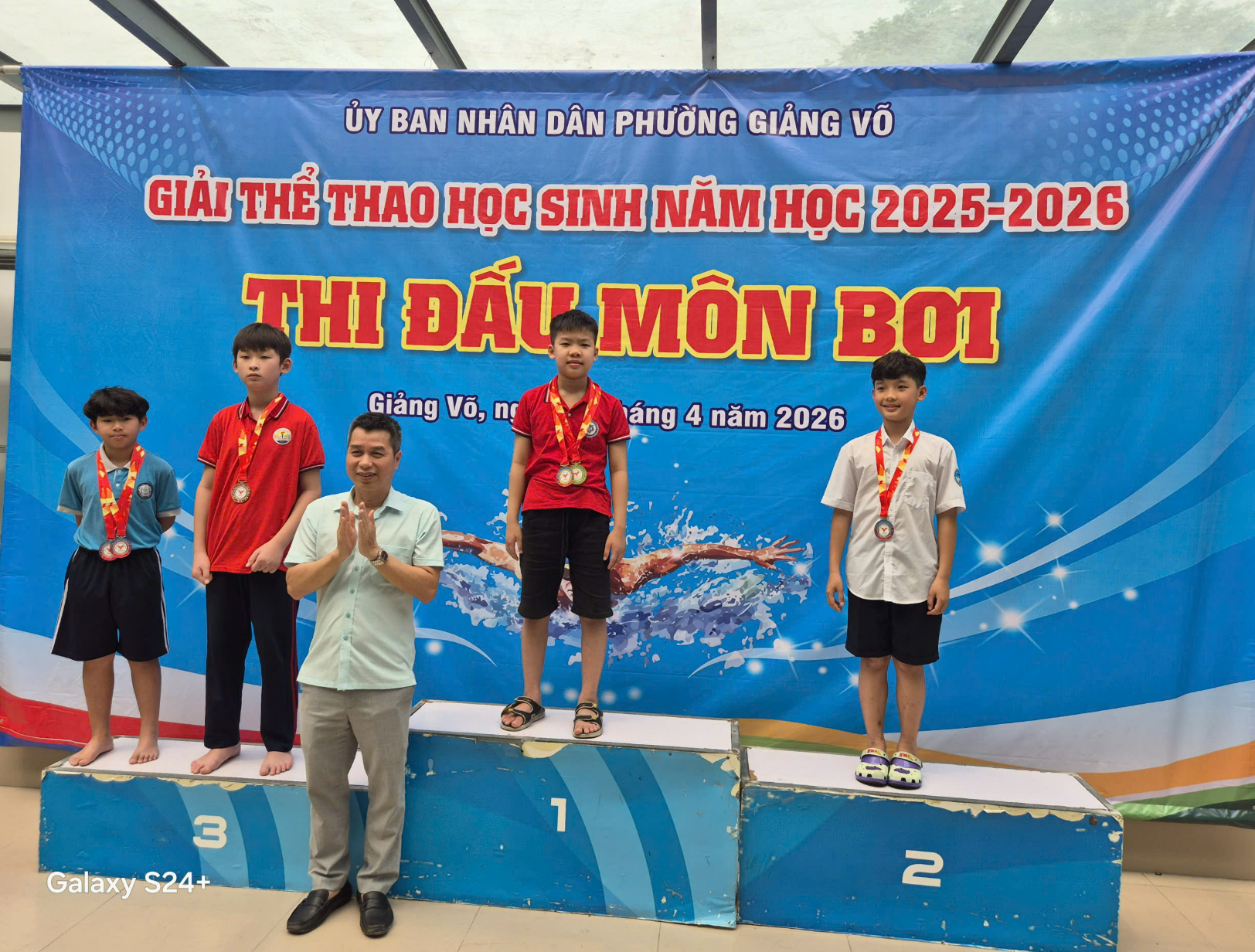 🌟 Đặc biệt, em Võ Quang Minh (5A4) đã xuất sắc được lựa chọn tiếp tục tham gia thi đấu môn Bơi cấp Thành phố – một dấu ấn nổi bật khẳng định chất lượng đào tạo và phong trào thể thao của nhà trường.