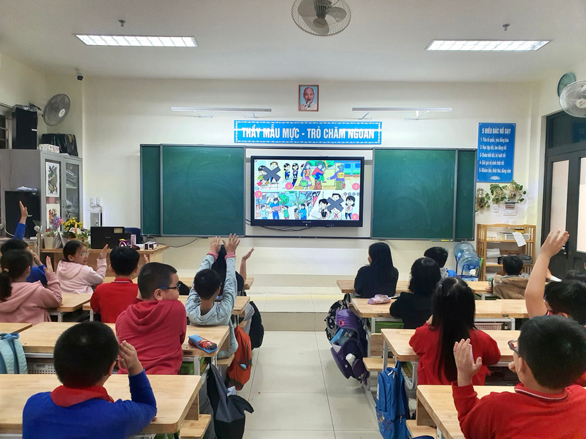Các nội dung trên được nhà trường chia sẻ đến học sinh thông qua các hình thức phong phú, đa dạng, lôi cuốn như cho các con xem clip, hình ảnh, tham gia trả lời các câu hỏi, đưa ra ý kiến của mình về nội dung của diễn đàn, …