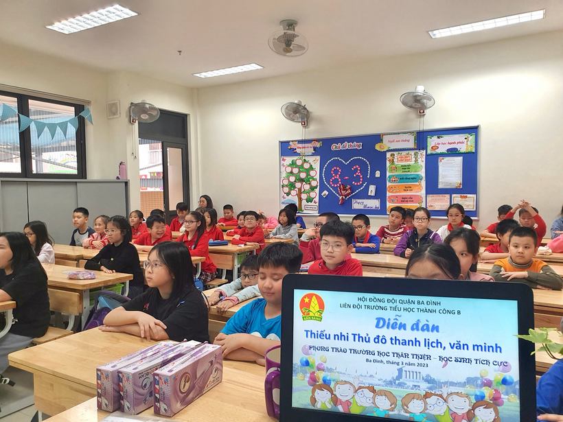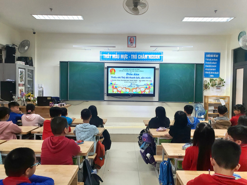 Những nội dung mà các con được tìm hiểu trong diễn đàn là: Nét đẹp của người Hà Nội trong cách ăn, cách mặc, cách ứng xử; Giáo dục học sinh lễ phép, lịch sự ở nơi công cộng; Xử lí các tình hình huống phòng chống bạo lực học đường; Trò chơi trắc nghiệm giúp học sinh nắm chắc hơn nội quy của nhà trường; Xem clip những hình ảnh của thầy và trò trường Tiểu học Thành Công B – một ngôi trường thân thiện, học sinh tích cực.