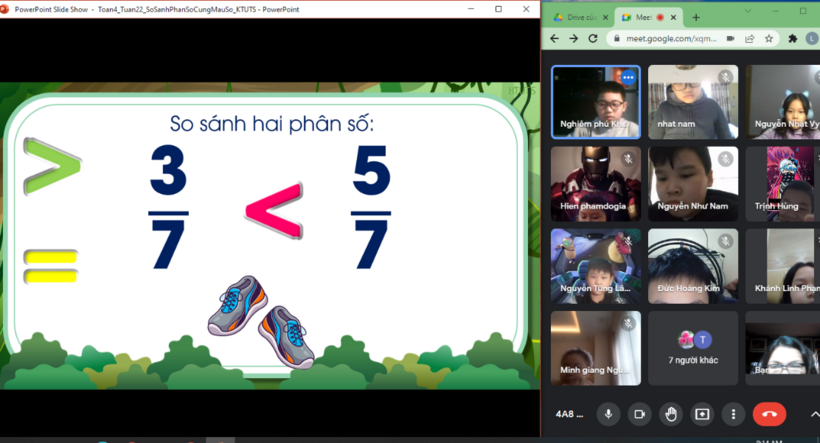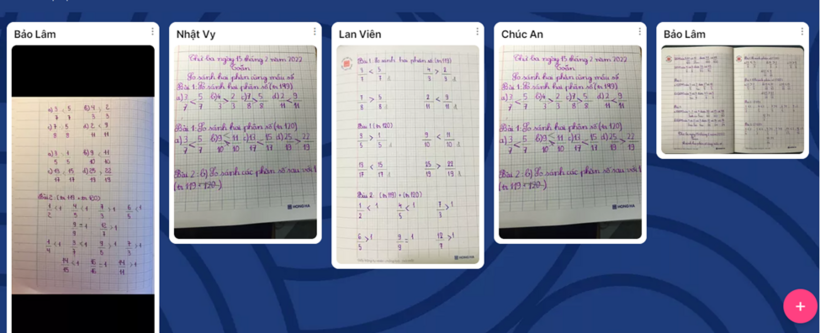 Tiết học diễn ra sôi nổi và cuốn hút nhờ sự sáng tạo, đổi mới trong các hình thức dạy học của cô giáo. Các em học sinh chủ động học tập, tương tác thành thạo trên các phần mềm như: gửi ảnh bài làm lên Padlet, thực hiện làm bài trực tiếp…