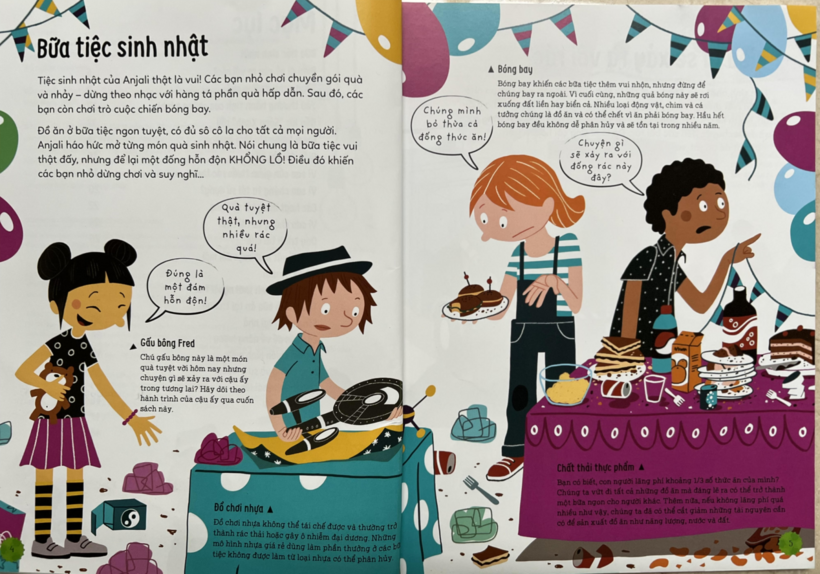 Tiệc sinh nhật của Anjali thật là vui! Nhưng khi bữa tiệc kết thúc, những gì còn lại là la liệt nào thức ăn thừa, nào giấy gói đồ, nào vỏ bóng bay, nào đồ chơi nhựa... Ta biết phải làm gì với núi rác này đây?