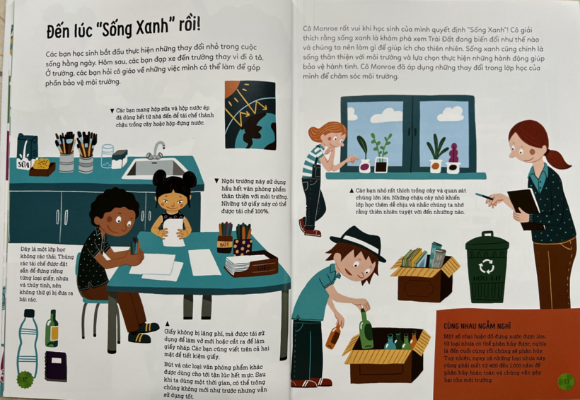 Thuộc loạt sách GO GREEN! về chủ đề môi trường dành cho các bạn nhỏ,bộ sách gồm 3 cuốn có nội dung thú vị, đầy ắp ý tưởng thông minh về giảm thiểu, tái sử dụng và tái chế nhựa.Sách có minh họa vô cùng sống động, đề cập kỹ càng tới các vấn đề mà nhựa gây ra, và khám phá những cách thiết thực nhất để khắc phục chúng. Chúng mình hãy cùng xắn tay áo lên và giúp Trái Đất mau khỏi ốm nào!