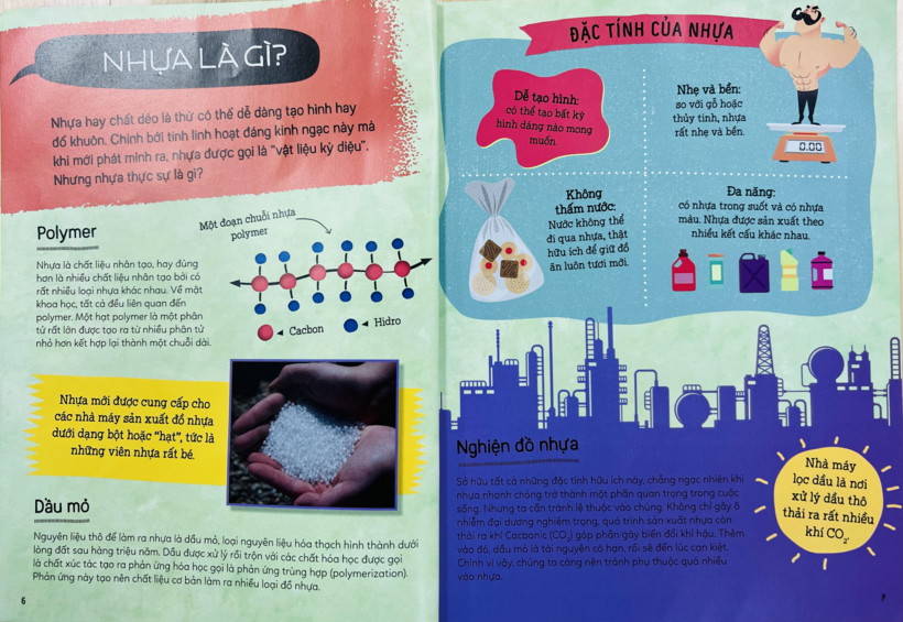 HÀNH TINH NHỰA cùng các em tìm hiểu nhựa là gì, nhựa được làm ra như thế nào, và chúng ta đã phụ thuộc vào nhựa ra sao trong từng hoạt động hằng ngày. Một cách thân thiện, cuốn sách cũng hướng bạn đọc tới những cách thức khả thi để giảm thiểu sử dụng nhựa, từ thay đổi nhận thức, đến các kế hoạch thiết thực và những giải pháp khoa học mang tính cách mạng.