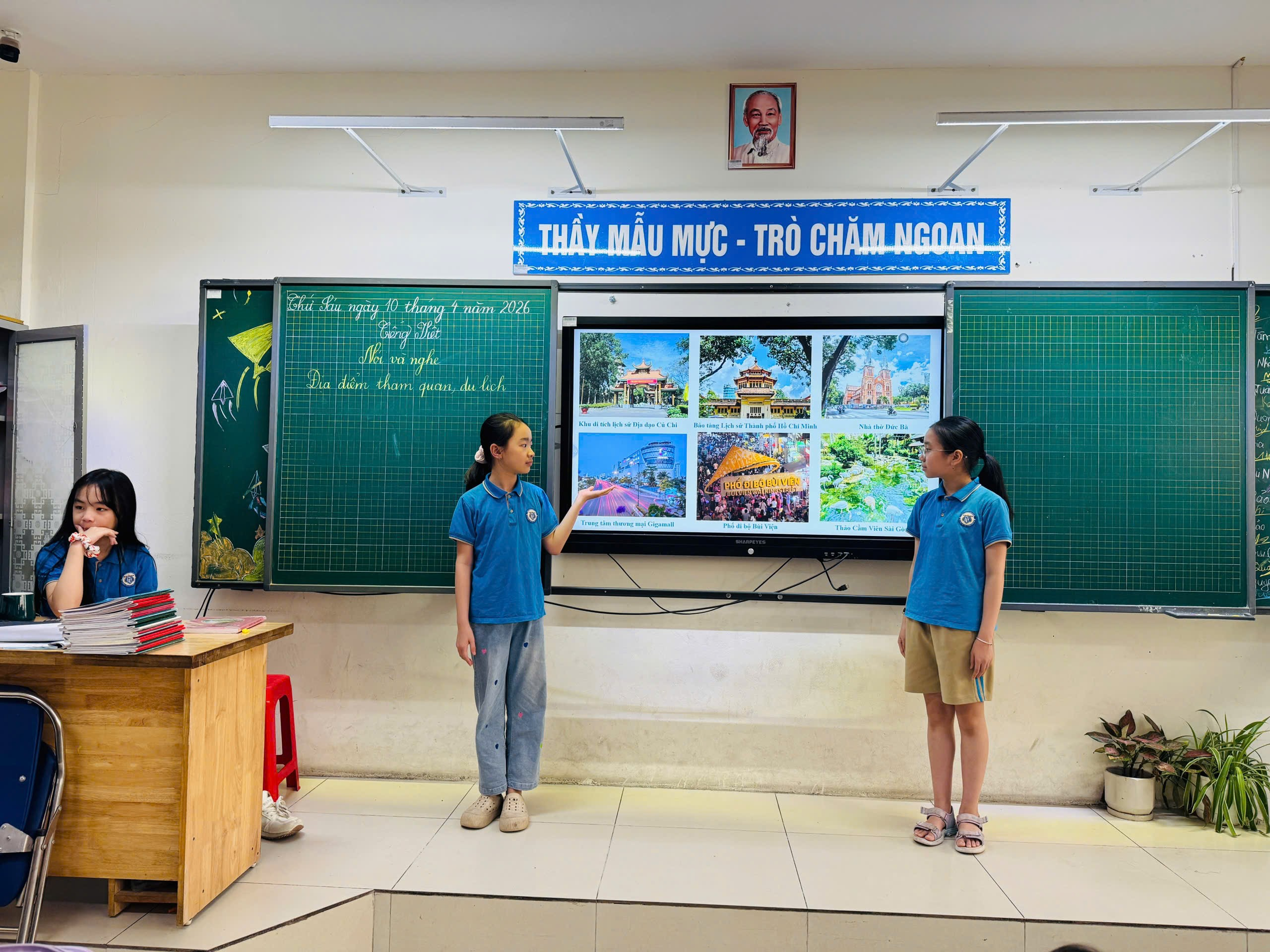 Tiết học khép lại nhưng những “hành trình khám phá” vẫn tiếp tục mở ra trong mỗi học sinh. Từ những câu chuyện, hình ảnh và trải nghiệm được chia sẻ, các em không chỉ thêm hiểu, thêm yêu quê hương đất nước, mà còn hình thành niềm hứng thú học tập, sự tự tin trong giao tiếp và khát vọng khám phá thế giới. Đây chính là minh chứng rõ nét cho hiệu quả của việc đổi mới phương pháp dạy học, khi mỗi giờ học thực sự trở thành một hành trình truyền cảm hứng.