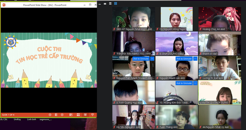 Ngày 15/3, Hội thi Tin học trẻ cấp trường theo hình thức trực tuyến qua Zoom đã diễn ra nghiêm túc với sự tham gia của 140 học sinh khối 3, 4 và 5, được chia thành 5 phòng thi với 02 giám thị/ phòng. Phần thi gồm 4 bài lập trình giải toán. Trải qua 60 phút, các thí sinh đã nộp bài thành công, BGK sẽ chấm điểm và công bố xếp giải. Những học sinh có điểm số cao nhất sẽ được lựa chọn để tham gia các cuộc thi về Tin học như Sáng tạo trẻ cấp Quận, Tin học trẻ cấp Thành phố năm học 2021-2022.