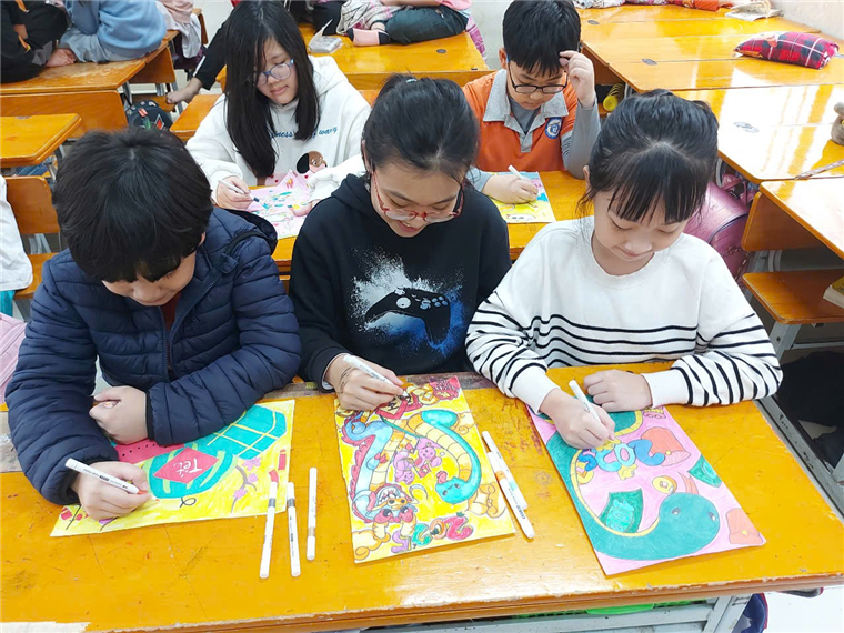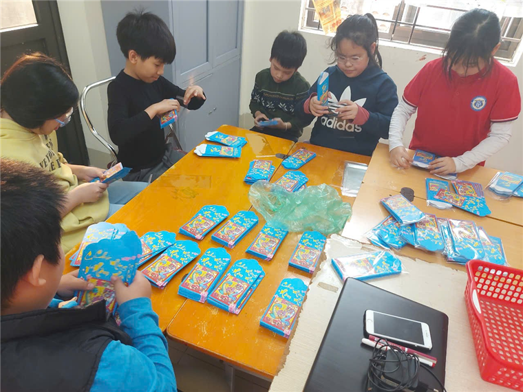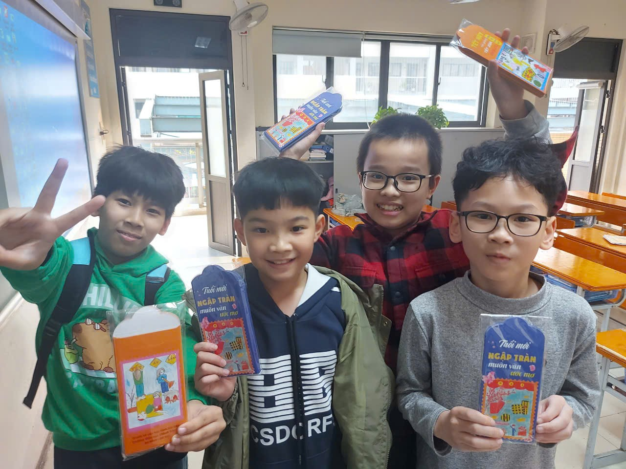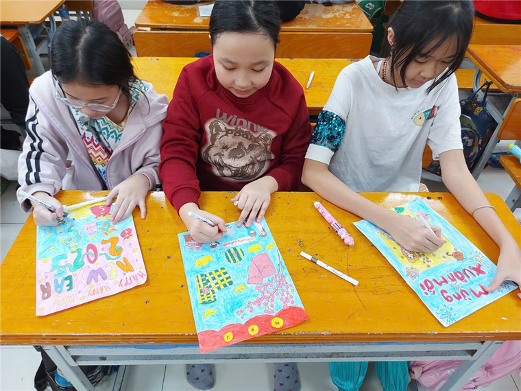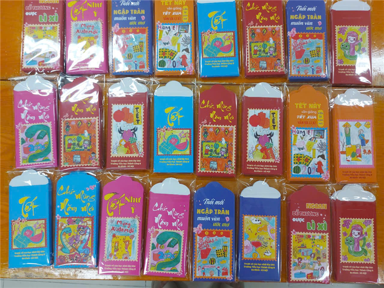 In tranh vẽ của lớp lên Bao lì xì yêu thương