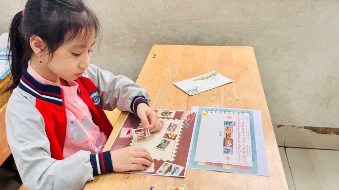 Bên cạnh việc tìm hiểu ý nghĩa của từng mẫu tem, các em còn được giáo viên hướng dẫn cách trình bày bài thi sao cho logic và hấp dẫn. Đặc biệt, nhiều em đã tự thiết kế những mẫu tem sáng tạo, thể hiện góc nhìn mới mẻ về sự kiện lịch sử trọng đại này.