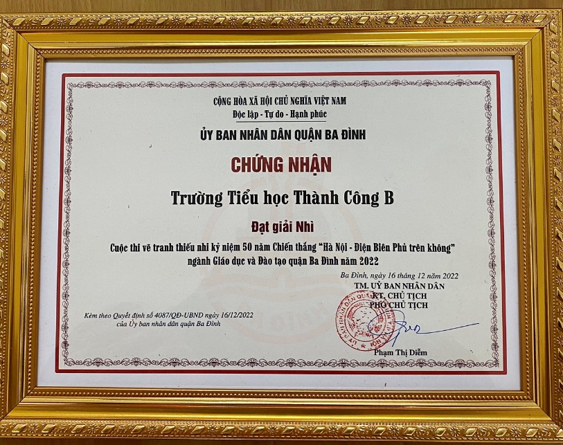 Một lần nữa, xin được chúc mừng thành tích của thầy và trò trong nhà trường. Với những kết quả đạt được trên, trường Tiểu học Thành Công B tiếp tục khẳng định là môi trường giáo dục toàn diện. Thầy tận tụy từ tâm - Trò chăm ngoan học giỏi, nhà trường luôn đồng hành cùng các em học sinh thân yêu!