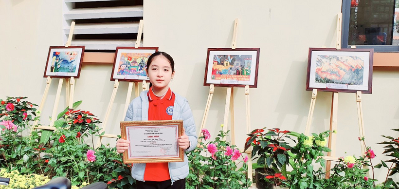Em Đỗ Lan Viên-lớp 5A8 đạt giải Nhì cấp quận cuộc thi vẽ tranh với chủ đề “Hà Nội - Điện Biên Phủ trên không”