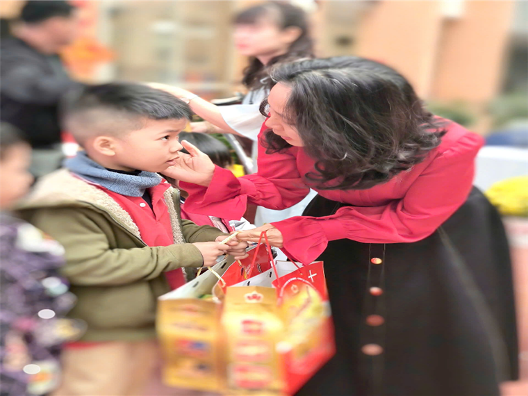 Cô Phạm Minh Thảo động viên và trao quà chúc mừng năm mới cho học sinh