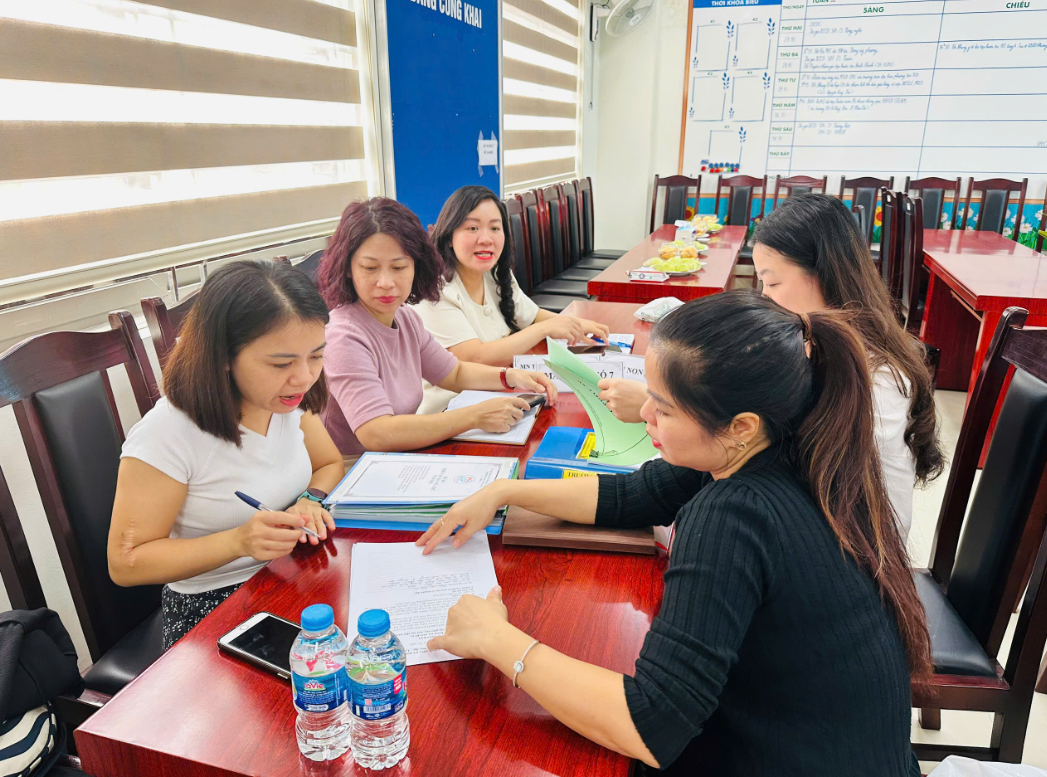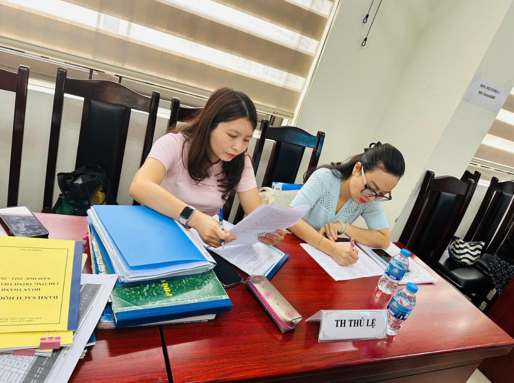 Tiếp đó, các nhà trường trong phường tiến hành kiểm tra chéo hồ sơ phổ cập, đối chiếu số liệu và rà soát minh chứng nhằm nâng cao tính khách quan, thống nhất trong báo cáo. Hoạt động này không chỉ giúp hoàn thiện hồ sơ của từng đơn vị mà còn tạo điều kiện để các trường chia sẻ kinh nghiệm, học hỏi lẫn nhau trong việc quản lý dữ liệu và triển khai nhiệm vụ phổ cập.