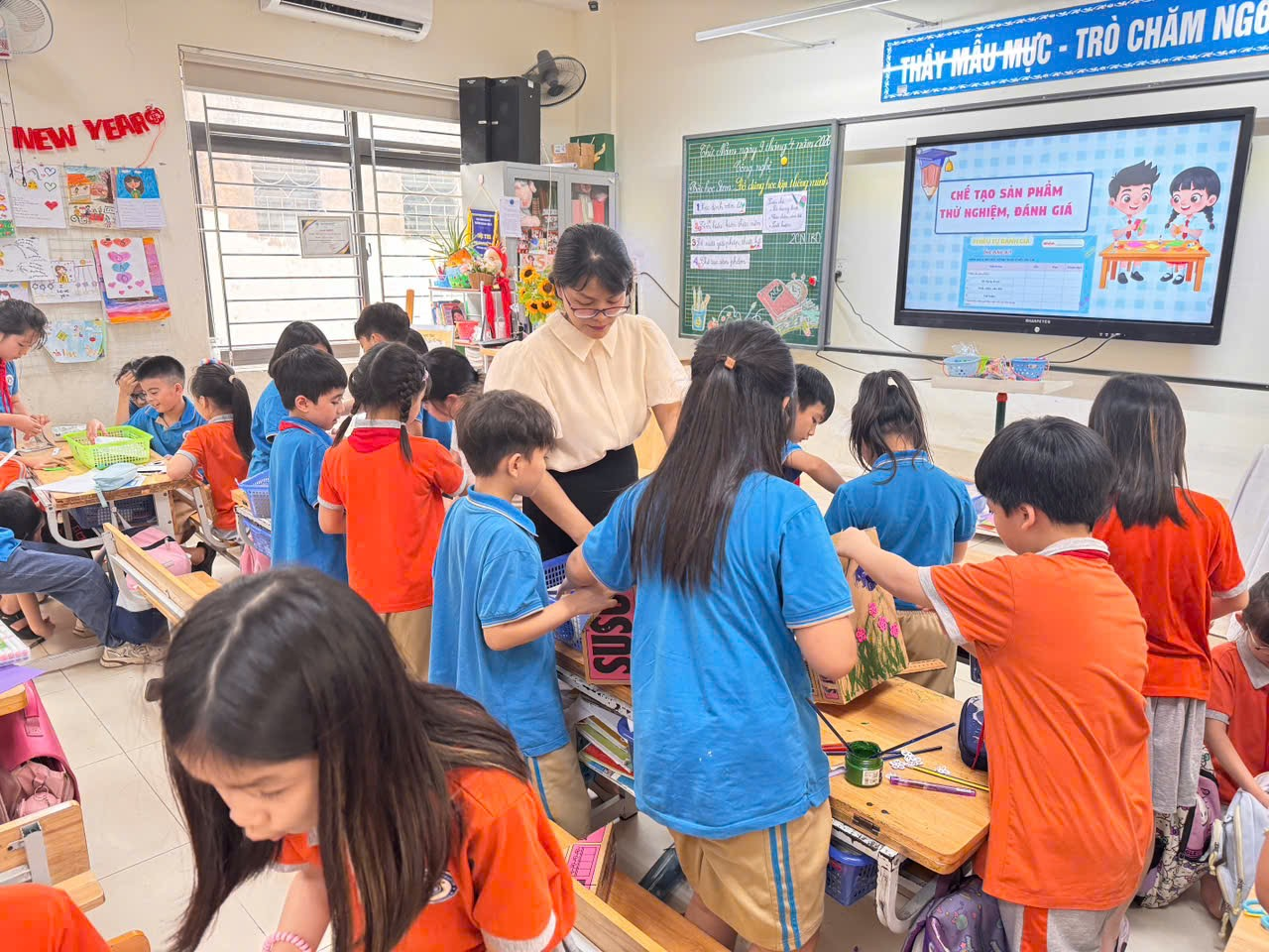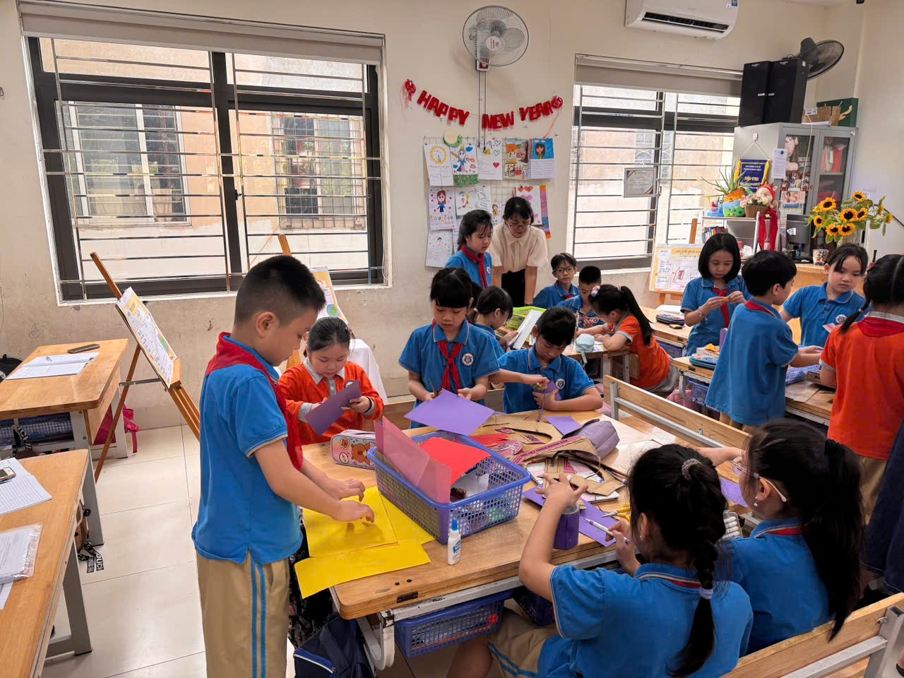 Tiết học kết thúc trong niềm hạnh phúc khi các em được trực tiếp cầm trên tay thành quả của mình và trao cho nhau những Sticker hình trái tim đỏ thắm thay lời khen ngợi và yêu thương. Qua tiết chuyên đề này, trường Tiểu học Thành Công B một lần nữa khẳng định quan điểm: Học STEM không chỉ là lắp ghép, mà là học cách quan sát thực tế để tìm ra giải pháp, học cách trân trọng vật liệu tái chế và ứng dụng công nghệ để làm cuộc sống tốt đẹp hơn.