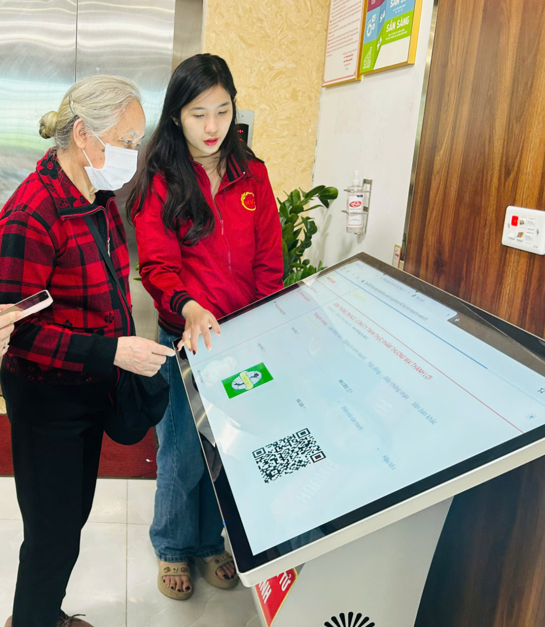 Bà Kim tham gia truy xuất nguồn gốc thực phẩm tại cơ sở cùng nhà trường
