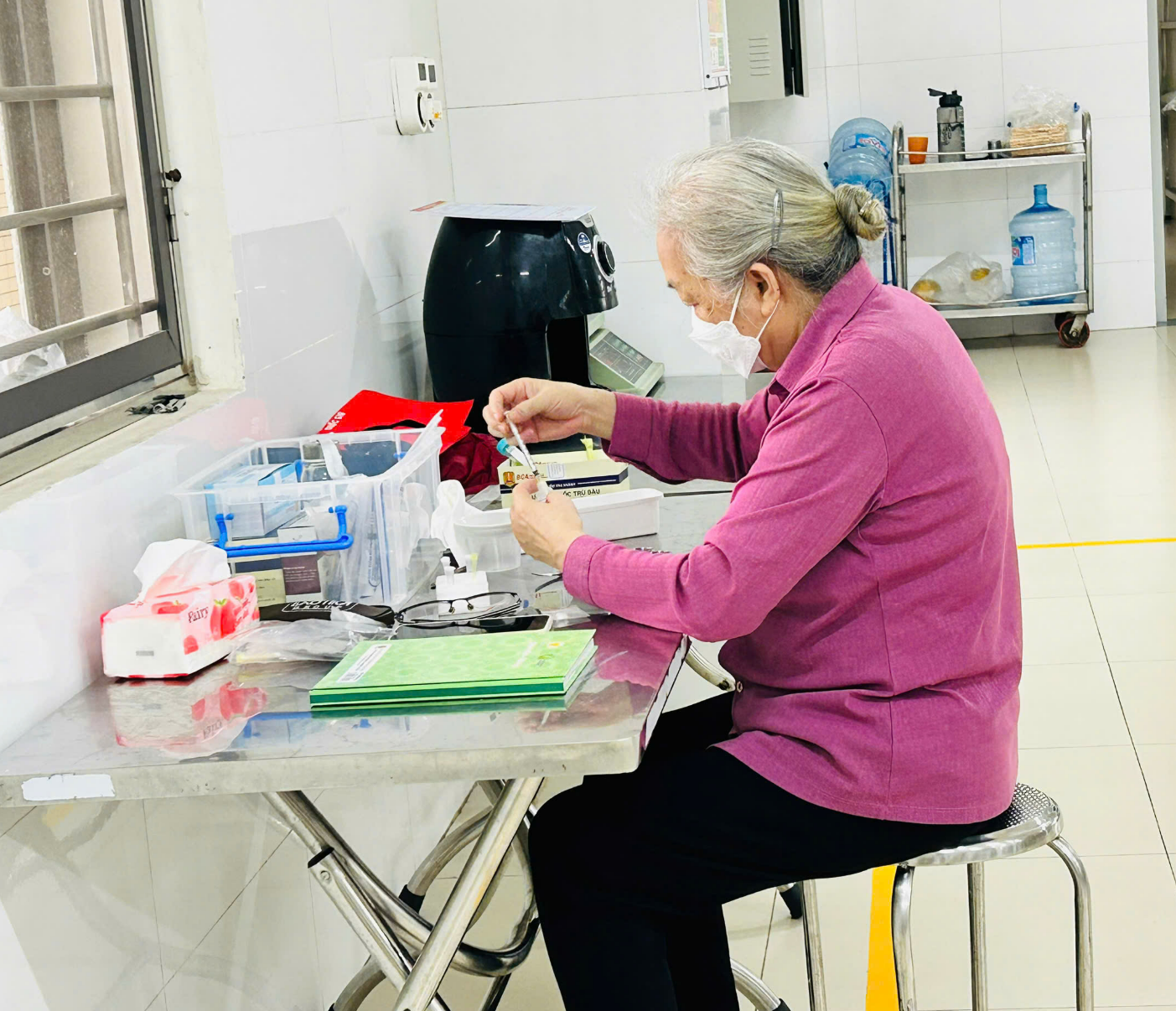 Không ồn ào, bà lặng lẽ test lượng thuốc bảo vệ thực vật trong rau xanh, kiểm tra ure trong tôm đông lạnh, phát hiện hàn the trong giò chả… bằng những dụng cụ kiểm tra nhanh theo đúng quy trình nghiệp vụ. Mỗi phép thử, mỗi kết quả không chỉ là con số hay màu sắc hiển thị, mà là sự yên tâm gửi gắm cho hàng trăm bữa ăn của các con.