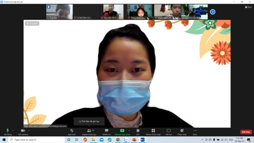 Cô Ngô Bích Hạnh - GVCN lớp 1A1 và một số học sinh trong lớp hiện đang là F0 nhưng vẫn tham gia dạy - học hàng ngày