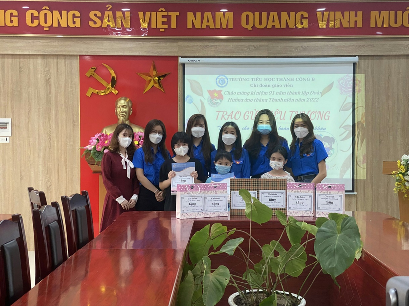 Ngoài công tác giảng dạy và chủ nhiệm, chúng em cảm thấy may mắn khi được tham gia hoạt động rất ý nghĩa: Trao gửi yêu thương - tặng quà cho học sinh có hoàn cảnh khó khăn do Chi đoàn trường tổ chức nhân dịp kỉ niệm 91 năm ngày thành lập Đoàn.