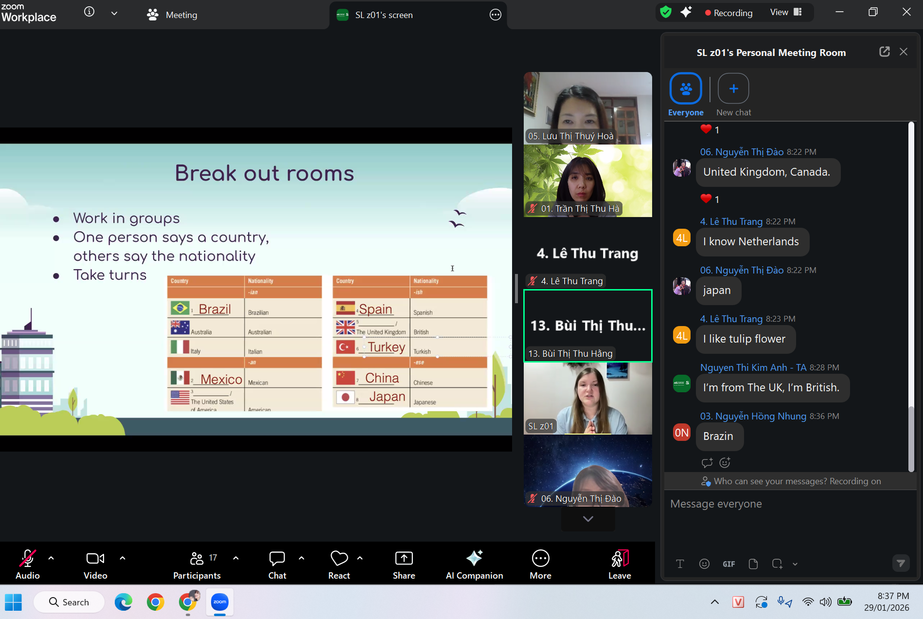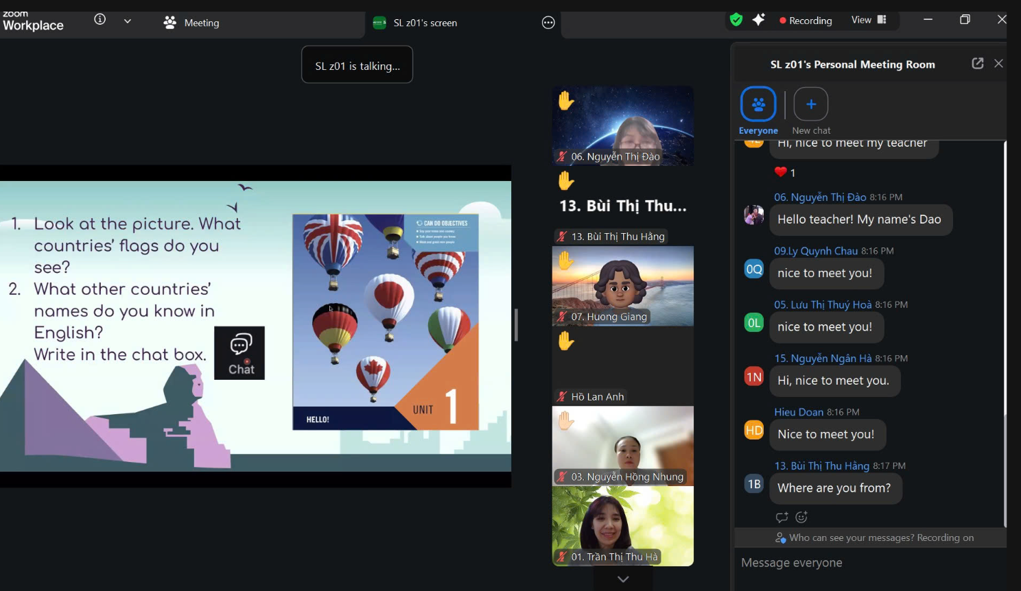 Bên cạnh các buổi học trực tiếp, lớp học còn được duy trì hình thức học online vào tối thứ Năm hằng tuần (từ 20h00 đến 21h30), giúp thầy cô linh hoạt củng cố kiến thức, duy trì thói quen luyện tập và từng bước hình thành phản xạ giao tiếp tiếng Anh trong cuộc sống và công việc.