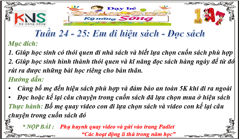 Hưởng ứng phong trào đọc sách đó, cô trò lớp 1A7 đã cùng nhau xây dựng, tổ chức ra nhiều hoạt động giúp học sinh yêu thích đọc. Có những hoạt động được cô giáo thực hành và sáng tạo ngay từ nội dung học môn Tiếng Việt lớp 1. Dựa trên yêu cầu đọc trong bài Ôn tập Chủ đề 2: “Mái ấm gia đình” trong sách giáo khoa, hay bài Ôn tập trong Chủ đề 3: “Mái trường mến yêu”, cô giáo chủ nhiệm đã biến yêu cầu bài học thành nội dung kĩ năng sống “Em đi hiệu sách” trong tháng 3 để thúc đẩy, khơi gợi việc tìm đọc sách và đọc sách cho mỗi học sinh trong lớp.