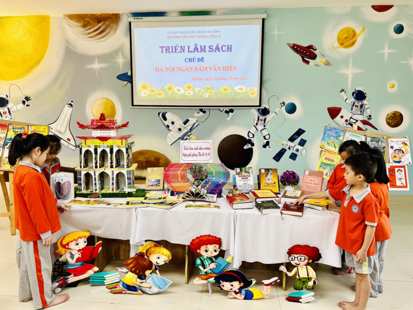 Nhân dịp tổ chức các hoạt động của Tuần lễ hưởng ứng học tập suốt đời, cùng với việc hướng tới kỉ niệm 68 năm ngày giải phóng Thủ đô 10/10/1954 - 10/10/2022, Thư viện đã tổ chức triển lãm sách với chủ đề “ Hà Nội ngàn năm văn hiến”. Những cuốn sách đặc sắc viết về Hà Nội được giới thiệu đến các thầy cô và các con HS thông qua trưng bày, xếp sách nghệ thuật. Ngoài ra, thư viện còn trình chiếu các phim tài liệu về Ngày giải phóng thủ đô, tìm hiểu về con người, nếp sống, ẩm thực, danh lam thắng cảnh,...của Hà Nội.