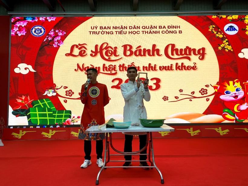 Trong ngày hội gói bánh chưng các bạn học sinh trường Tiểu học Thành Công B được xem những tiết mục văn nghệ đặc sắc, được nghe giới thiệu về sự tích bánh chưng, được hướng dẫn cách làm bánh trực tiếp từ thầy cô giáo, các anh chị hỗ trợ và xem video về các bước gói bánh chưng… Các bạn được tự tay đong gạo, đỗ vào khuôn bánh sau đó gói bánh, buộc lạt…