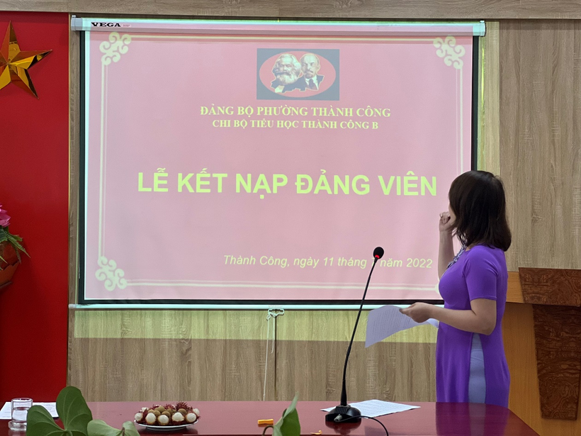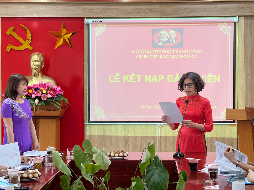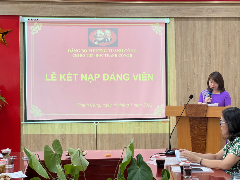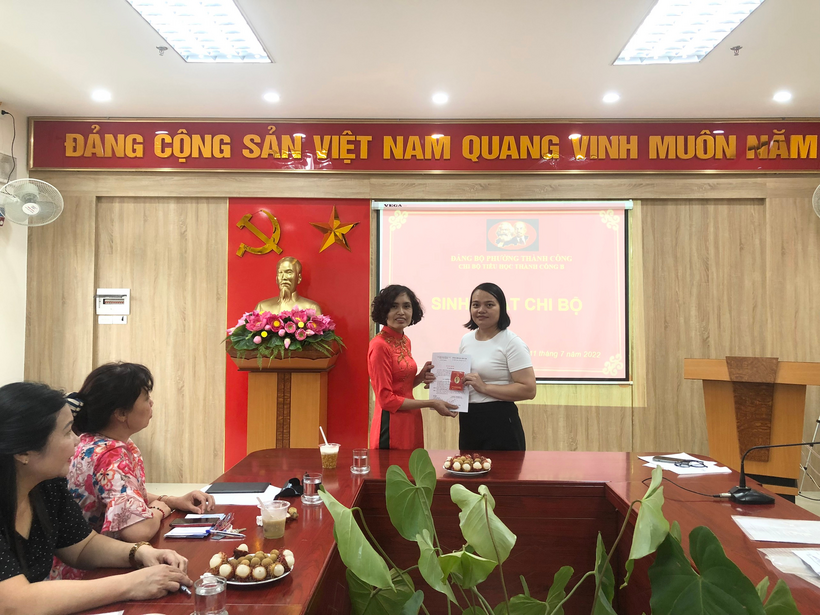 Vào buổi họp Chi bộ định kì được diễn ra ngày 11/07/2022, Chi bộ trường Tiểu học Thành Công B đã tổ chức Lễ kết nạp đảng viên mới cho đồng chí Quách Minh Hằng. Đồng chí Quách Minh Hằng là một giáo viên nhiều kinh nghiệm, luôn nhận được sự tín nhiệm, yêu quý của các đồng nghiệp cũng như sự tin tưởng của các bậc phụ huynh trong nhiều năm.