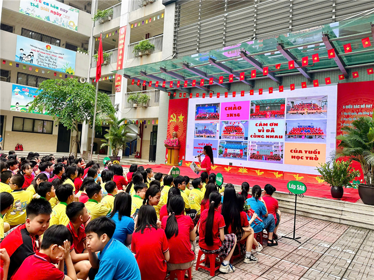 Chương trình đầy cảm xúc với thước phim “5 năm hạnh phúc dưới mái trường mến yêu” của 8 tập thể lớp khối 5– nơi từng nụ cười, ánh mắt, tiếng reo vui vang vọng sân trường như được sống lại. Mỗi khung hình đều là minh chứng cho tuổi thơ trong sáng, là những khoảnh khắc vô giá mà các em sẽ mãi mang theo suốt cuộc đời.