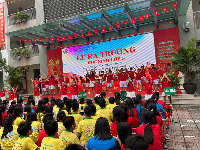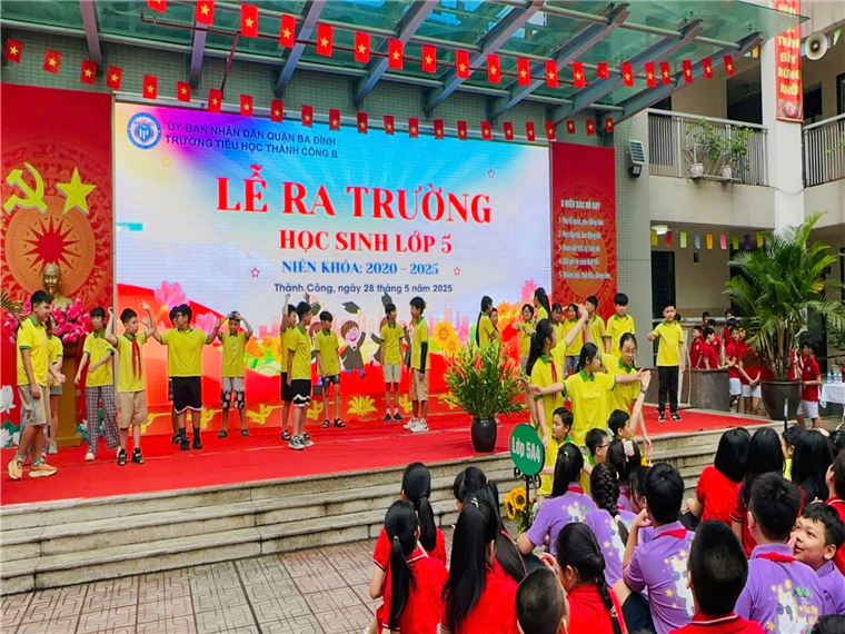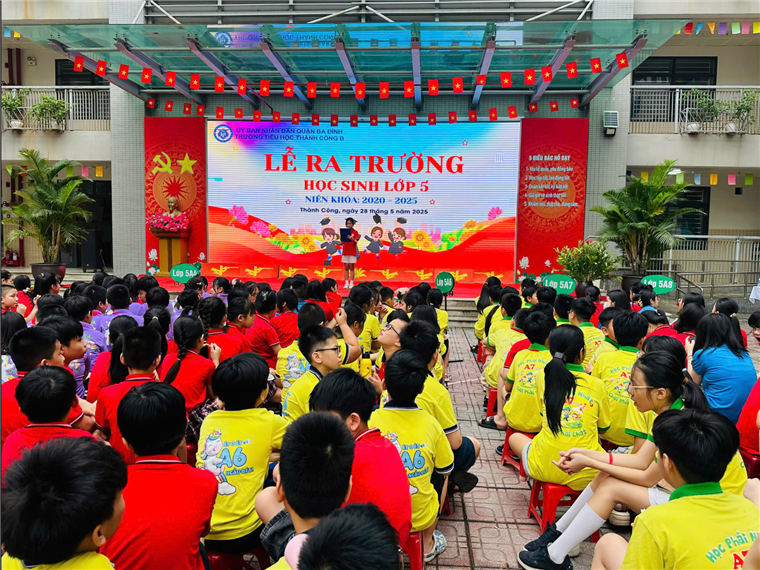 Lễ ra trường không chỉ là lời chia tay, mà còn là khoảnh khắc đánh dấu bước ngoặt của tuổi thơ – nơi những ước mơ bắt đầu bay xa. Chúc các em luôn vững bước, tự tin và không ngừng tỏa sáng trên con đường tri thức và cuộc sống mai sau. Mong các em luôn nhớ rằng: Thành Công B luôn là nhà, các thầy cô luôn dõi theo bước đường trưởng thành của các em.