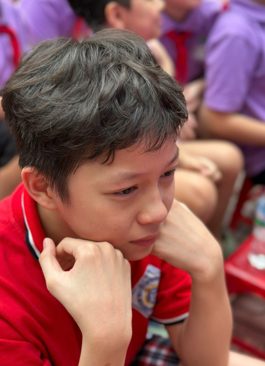 Đại diện cho toàn thể học sinh khối 5, em Ngô Tú Anh lớp 5A2 đã xúc động chia sẻ những lời tri ân tới thầy cô, mái trường và cha mẹ. Giọng nói nghẹn ngào, ánh mắt rưng rưng, từng lời em cất lên như thay tiếng lòng của biết bao học trò nhỏ – những người sắp sửa rời xa vòng tay thân quen để bắt đầu một hành trình mới.