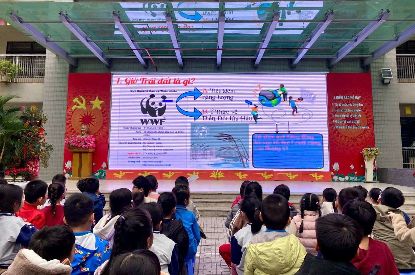 Buổi tuyên truyền diễn ra sôi nổi với nhiều nội dung hấp dẫn, giúp các em học sinh hiểu rõ hơn về ý nghĩa của Giờ Trái Đất - một chiến dịch môi trường lớn nhất thế giới do Quỹ Quốc tế Bảo vệ Thiên nhiên (WWF) khởi xướng. Năm nay, chiến dịch mang thông điệp "Chuyển dịch xanh - Tương lai xanh", kêu gọi mọi người cùng hành động để hướng tới một tương lai bền vững. Trong chương trình, các thầy cô giáo đã chia sẻ về thực trạng ô nhiễm môi trường, tác động của biến đổi khí hậu cũng như tầm quan trọng của việc sử dụng năng lượng tiết kiệm, hiệu quả.