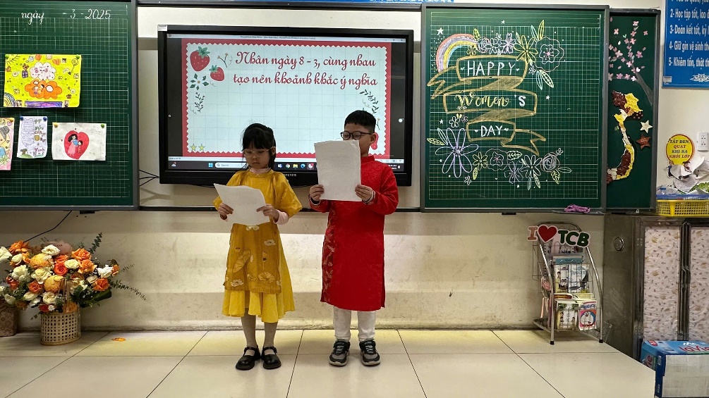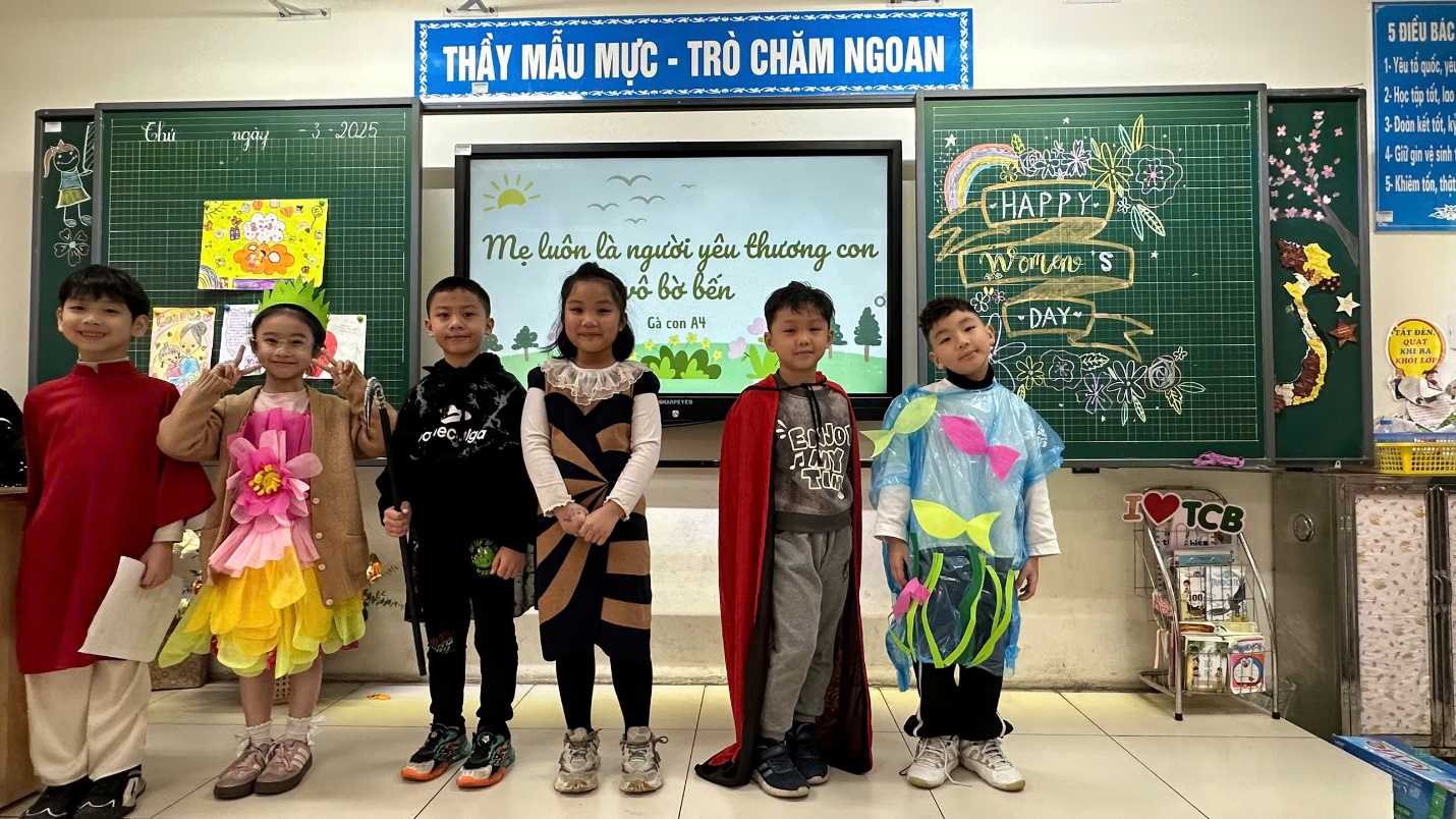 Hưởng ứng ngày Quốc tế Phụ nữ 8/3, Gà con 2A4, trường Tiểu học Thành Công B đã có những tiết mục văn nghệ vô cùng đặc sắc dành tặng bà, tặng mẹ, các cô giáo và các bạn nữ trong lớp. Những thiên thần nhỏ đáng yêu đã tạo nên một sân khấu nghệ thuật mini vô cùng ấn tượng. Đó là màn nhảy hiện đại “ Mẹ ơi đừng lo”, biểu diễn hát múa “ Mẹ ơi, có biết”, tiết mục đọc thơ bài thơ “ Mẹ”, vẽ tranh và bình tranh “ Mẹ và con gái” hay vở kịch ngắn đầy ấn tượng “ Người mẹ và Thần Chết”. Các tiết mục đều được các bạn nhỏ dàn dựng, tập luyện để mang đến những món quà bất ngờ.