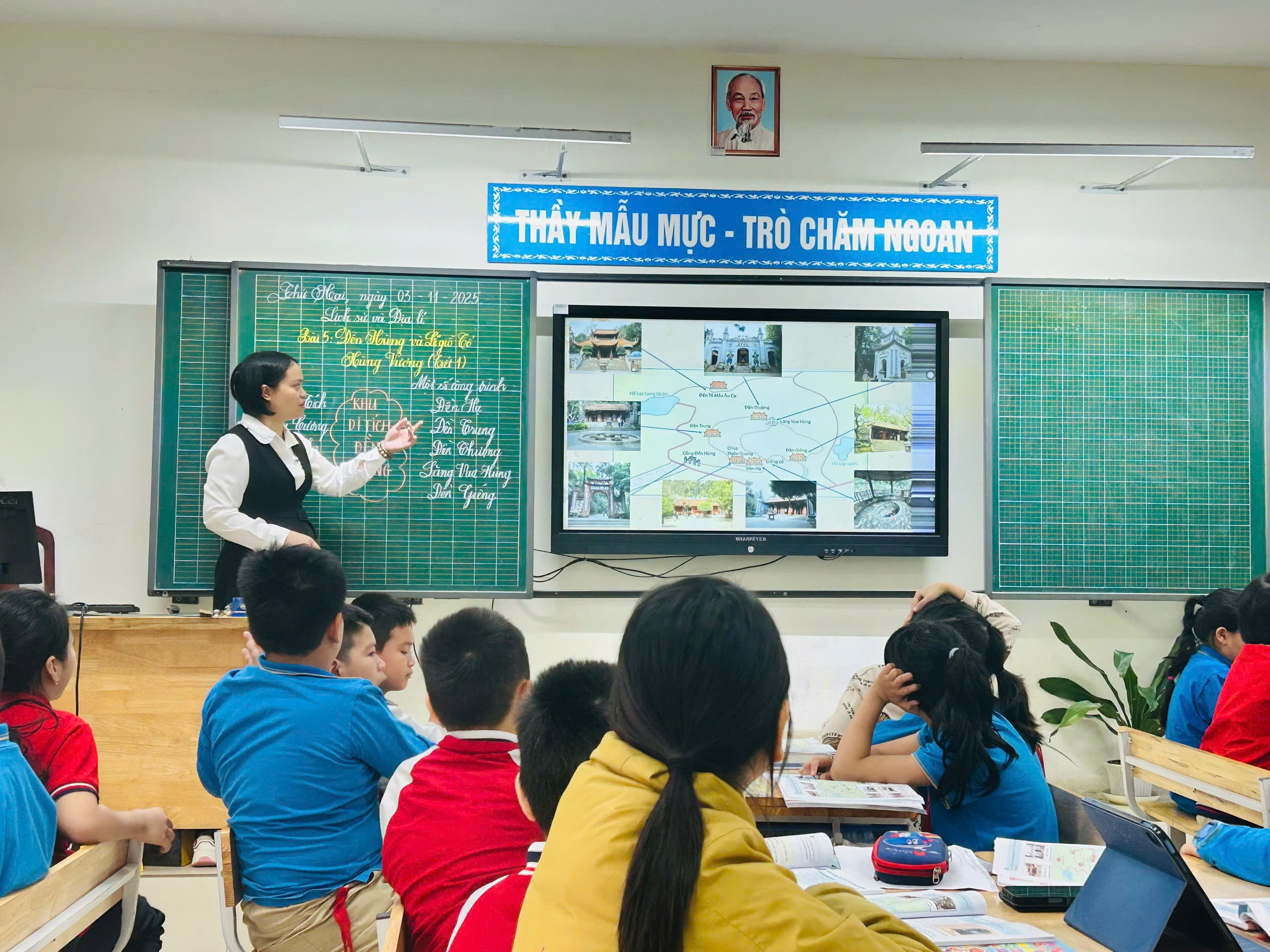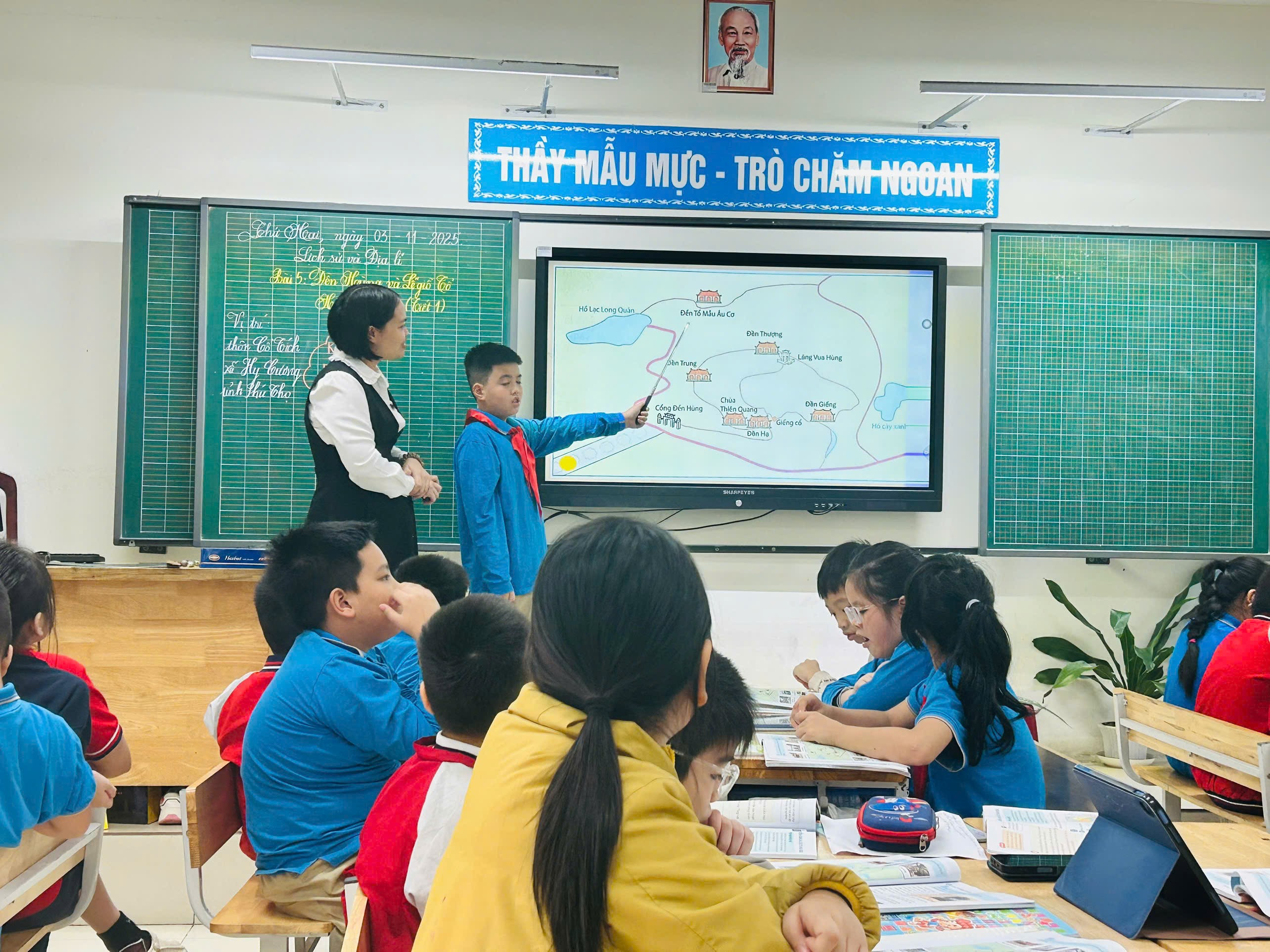 Kết thúc hành trình, cả lớp cùng nhau tìm hiểu ý nghĩa sâu sắc của câu nói lịch sử của Chủ tịch Hồ Chí Minh tại Đền Giếng vào ngày 19/9/1954: “Các Vua Hùng đã có công dựng nước, Bác cháu ta phải cùng nhau giữ lấy nước.” Lời dạy ấy đã khắc sâu vào tâm trí học sinh lớp 4A3 về lòng tự hào, biết ơn tổ tiên và ý thức trách nhiệm trong việc xây dựng, bảo vệ Tổ quốc. Nhờ công phu chuẩn bị và tình yêu nghề của cô giáo, tiết học không chỉ giúp các em tiếp thu kiến thức mà còn nuôi dưỡng trong lòng các em niềm tự hào dân tộc và tình yêu quê hương đất nước.