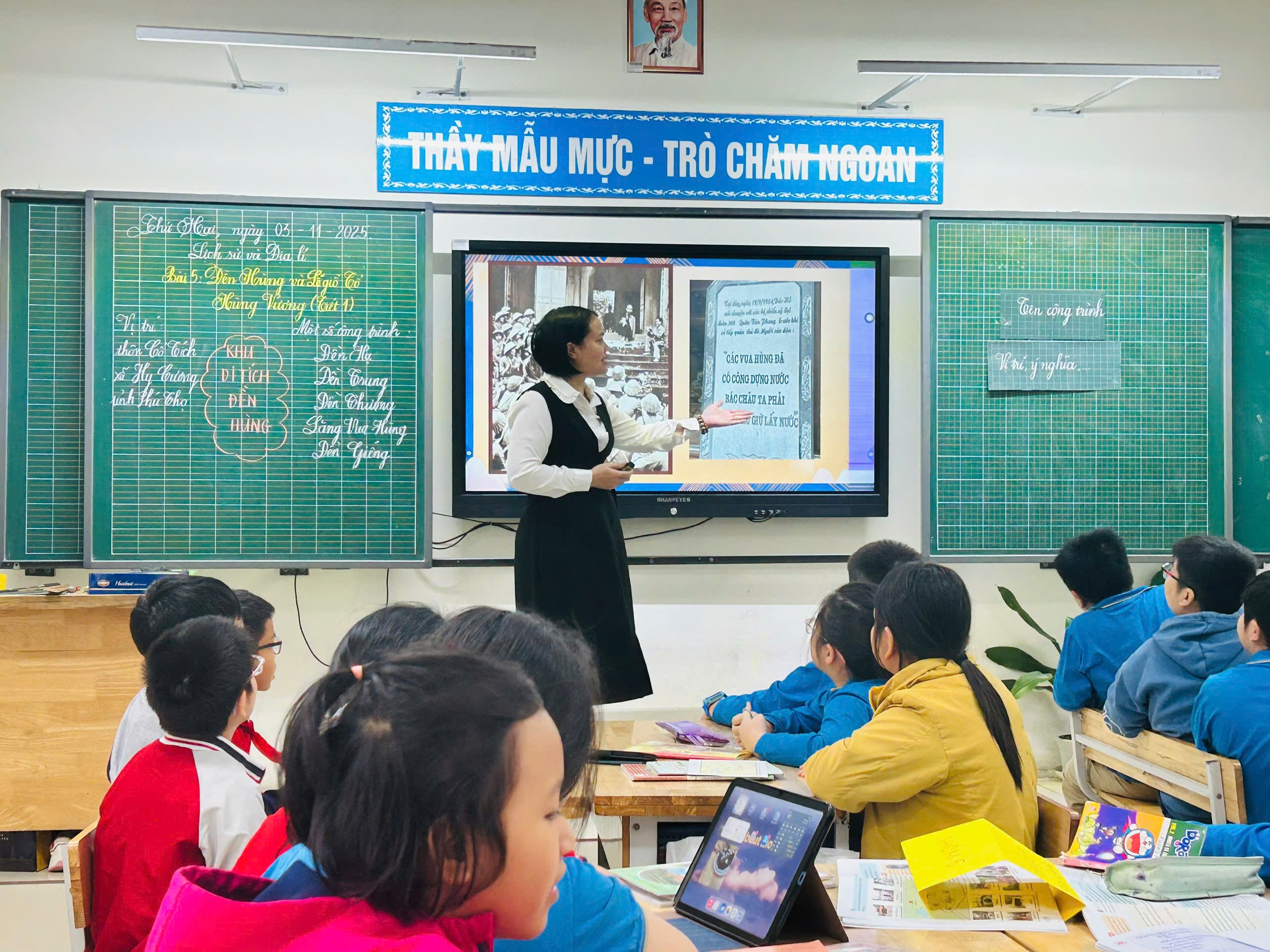 Vừa qua, các em học sinh lớp 4A3, Trường Tiểu học Thành Công B đã có một tiết học Lịch sử và Địa lí vô cùng ý nghĩa và sống động với chủ đề: ĐỀN HÙNG VÀ LỄ GIỖ TỔ HÙNG VƯƠNG (Tiết 1: Khu di tích Đền Hùng). Để mang lại cho học sinh những trải nghiệm chân thực và sinh động nhất, cô giáo Đào Thị Lan Thanh cùng gia đình đã trực tiếp đến thăm Khu di tích Đền Hùng (tỉnh Phú Thọ), ghi lại những thước phim tư liệu quý giá về quần thể di tích linh thiêng này. Những hình ảnh, video do chính cô quay đã được sử dụng trong tiết học, giúp các em như được “hành hương” về cội nguồn dân tộc ngay tại lớp học của mình.