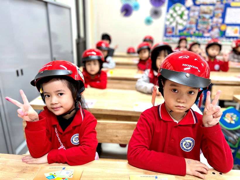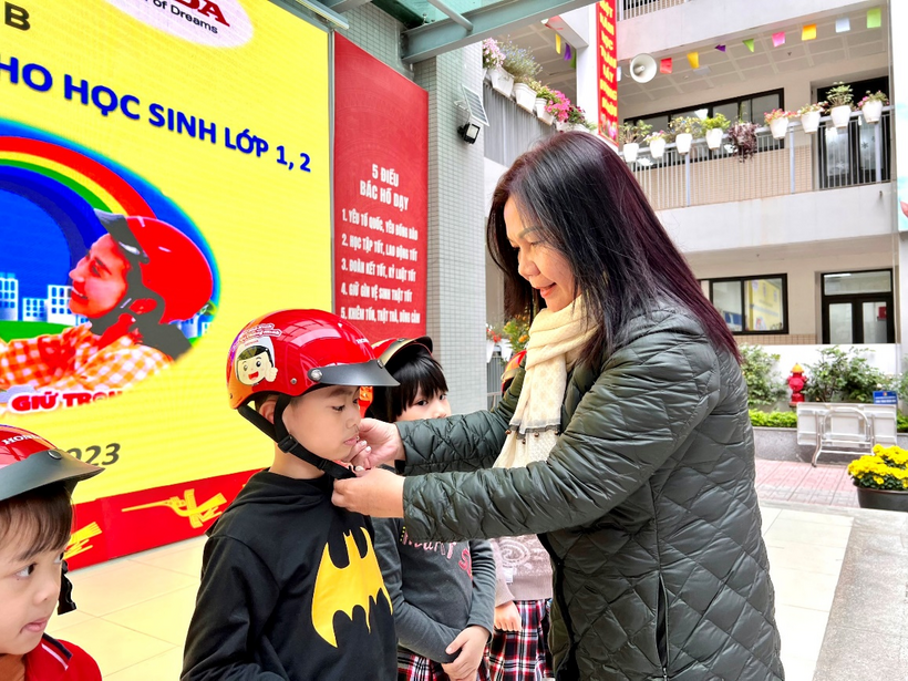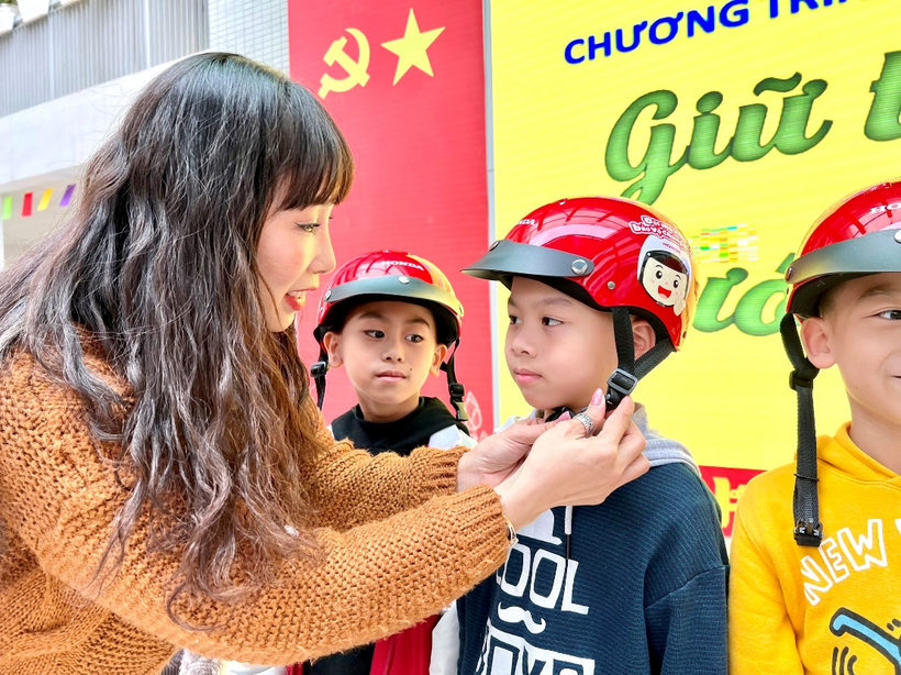 Những chiếc mũ bảo hiểm xinh được trao tặng đến từng bạn nhỏ