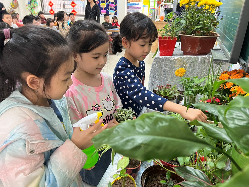 Đây là cơ hội các bạn được khoe sản phẩm tự công mình vun trồng chăm bón bấy lâu nay. Cô giáo chủ nhiệm lớp 1A4 đã hướng dẫn các bạn cách chăm sóc cây cối, cắt tỉa những chiếc lá đã già, cành hoa đã khô. Khi được tham gia vào các hoạt động chăm sóc cây, nhiều bạn nhỏ học cách trồng cây, chăm sóc cây xanh, đồng thời cũng giúp cho cảm xúc và giác quan của các bạn được phát triển tốt hơn.