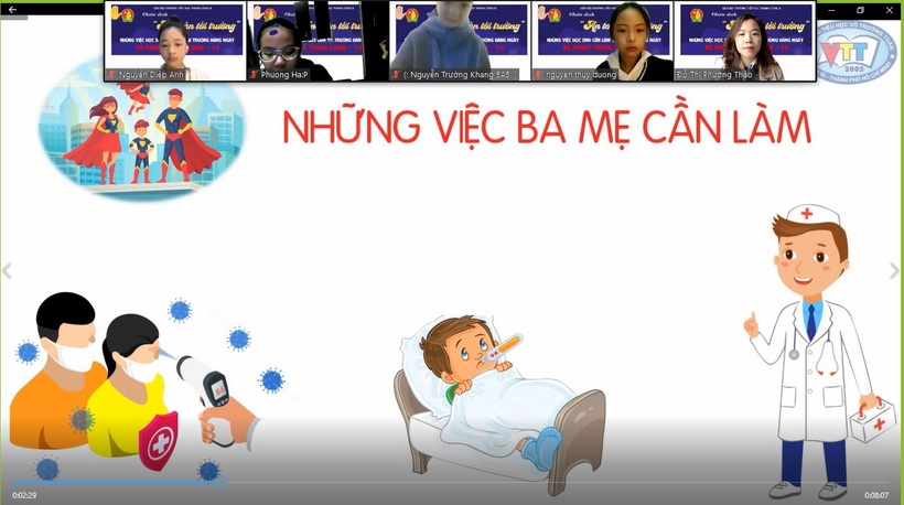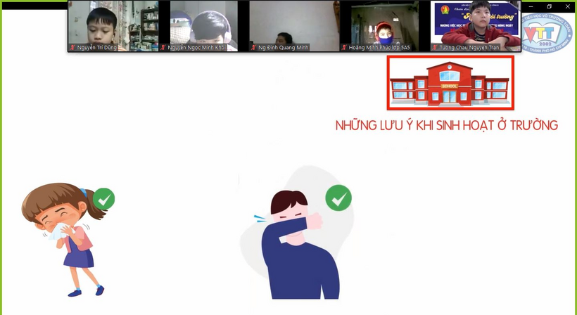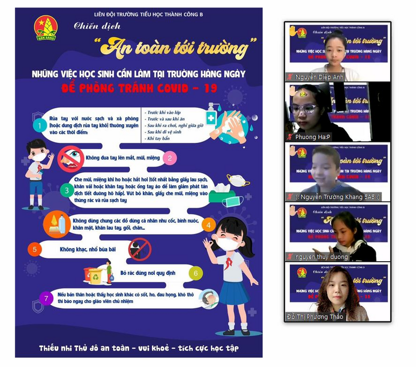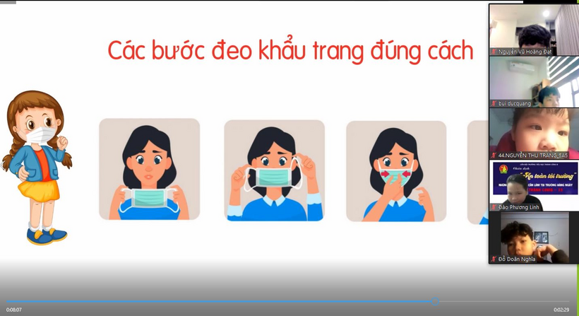 Trong buổi tuyên truyền ở các lớp học, học sinh không chỉ nắm được những việc cha mẹ và các con cần chuẩn bị trước khi tới trường, những việc học sinh cần làm tại trường hằng ngày để phòng tránh Covid-19 qua các hình ảnh minh hoạ cụ thể, sinh động mà các con còn được theo dõi đoạn video hướng dẫn chi tiết và cùng nhau thực hành các bước đeo khẩu trang đúng cách, quy trình 6 bước rửa tay đúng.